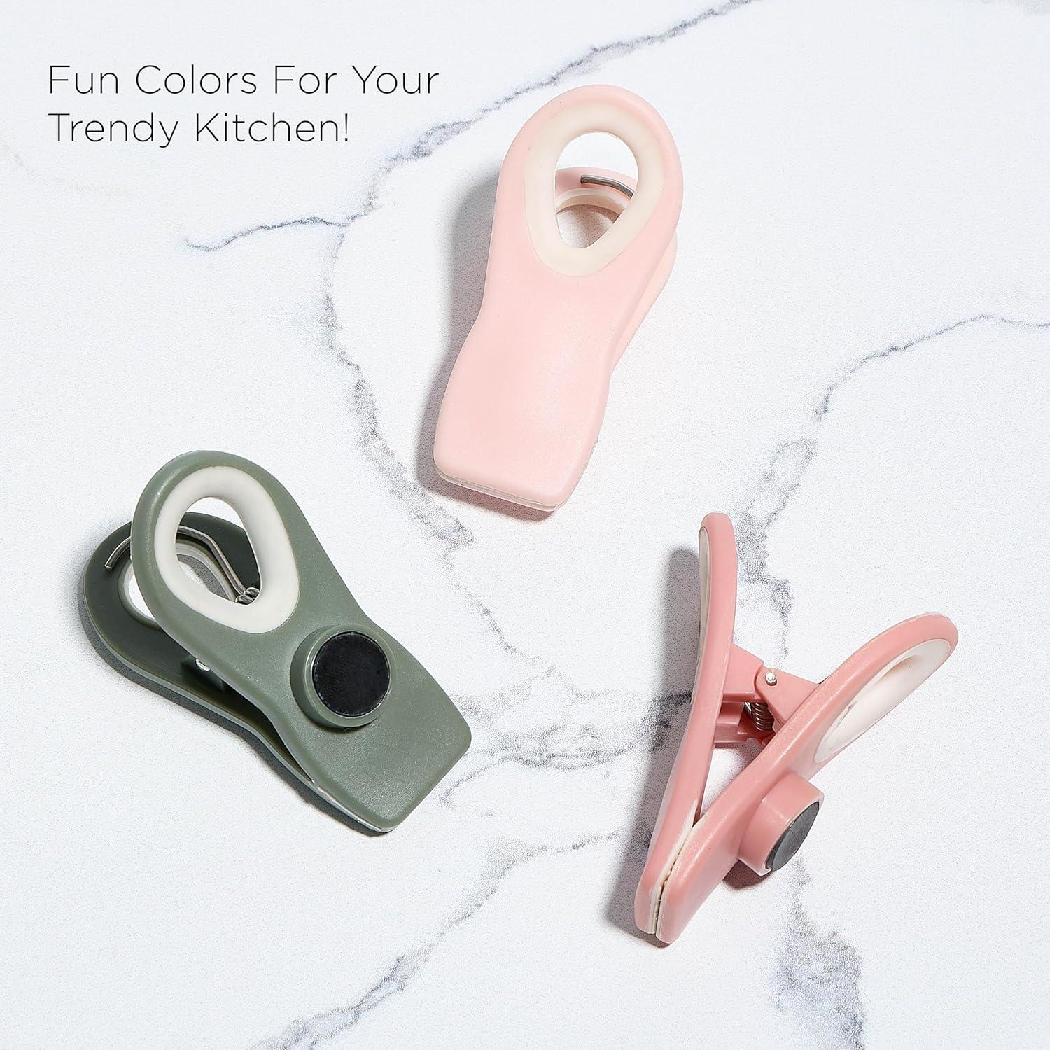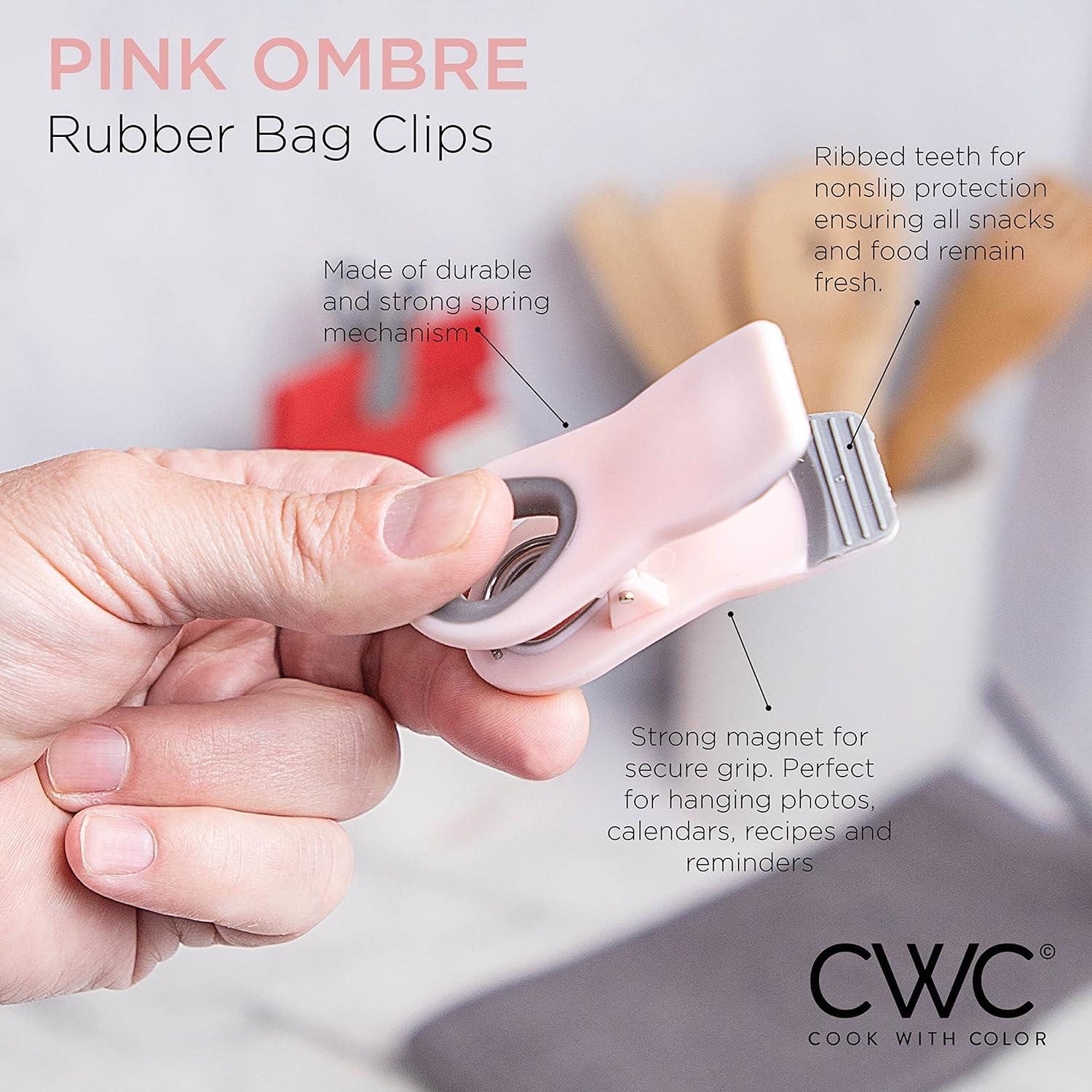 COOK WITH COLOR Bag Clips with Magnet- Food Clips, Chip Clips, Bag Clips for Food Storage with Airtight Seal Grip for Bread Bags, Snack Bags and Food Bags (White, Pack of 10)(Pink)
