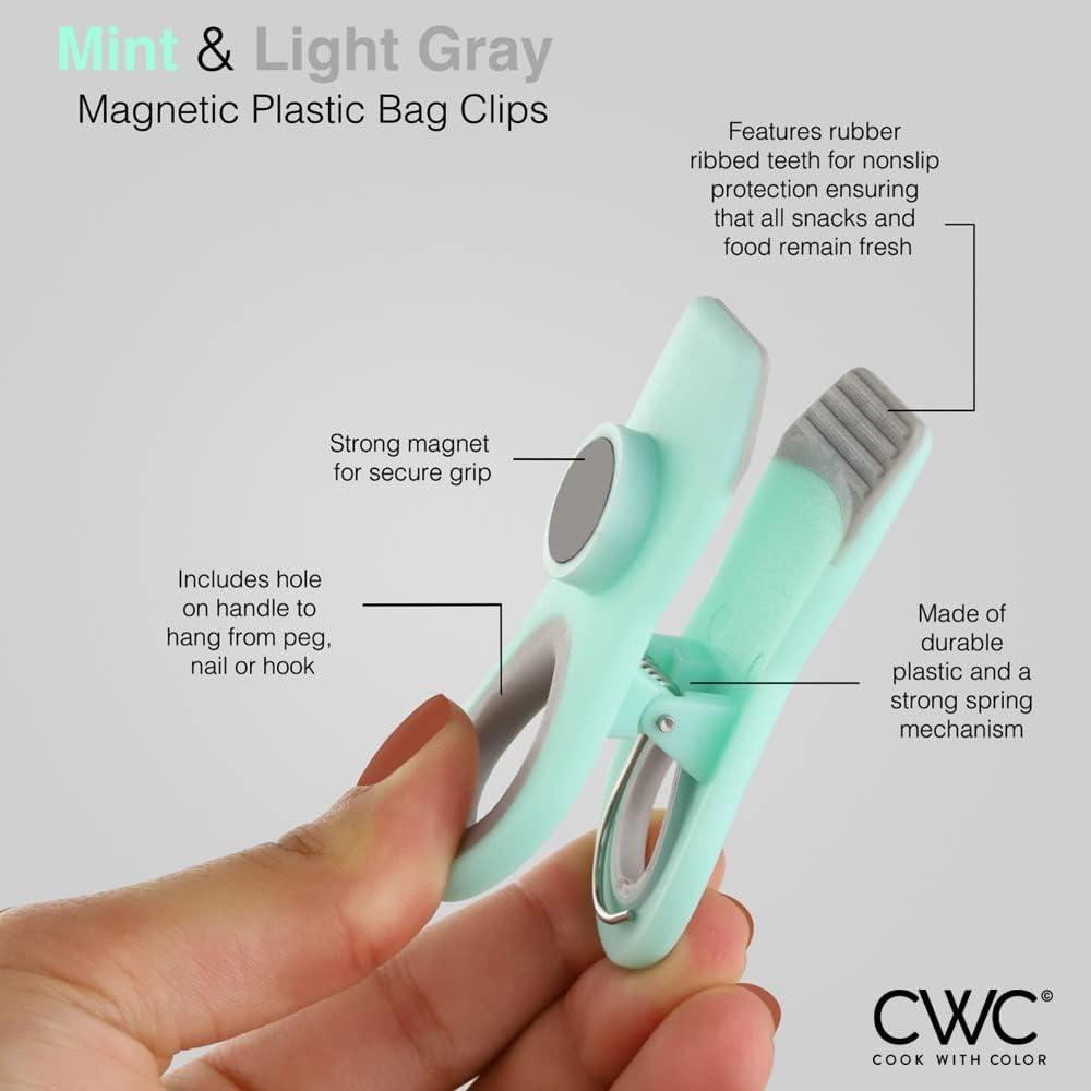 COOK WITH COLOR Bag Clips with Magnet- Food Clips, Chip Clips, Bag Clips for Food Storage with Airtight Seal Grip for Bread Bags, Snack Bags and Food Bags (White, Pack of 10)(Mint and Grey)
