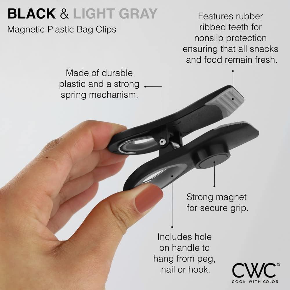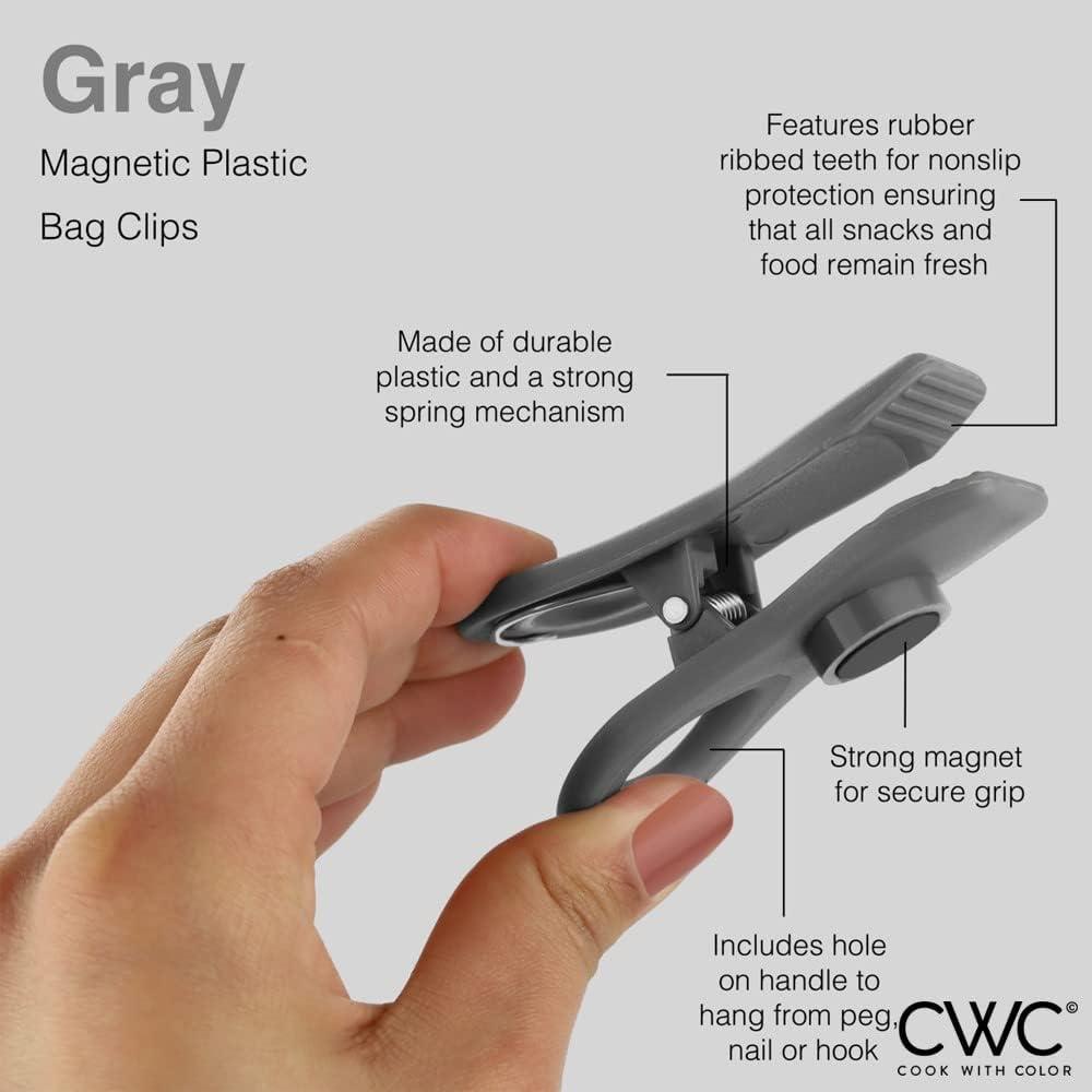 COOK WITH COLOR Bag Clips with Magnet- Food Clips, Chip Clips, Bag Clips for Food Storage with Airtight Seal Grip for Bread Bags, Snack Bags and Food Bags (White, Pack of 10)(Gray)