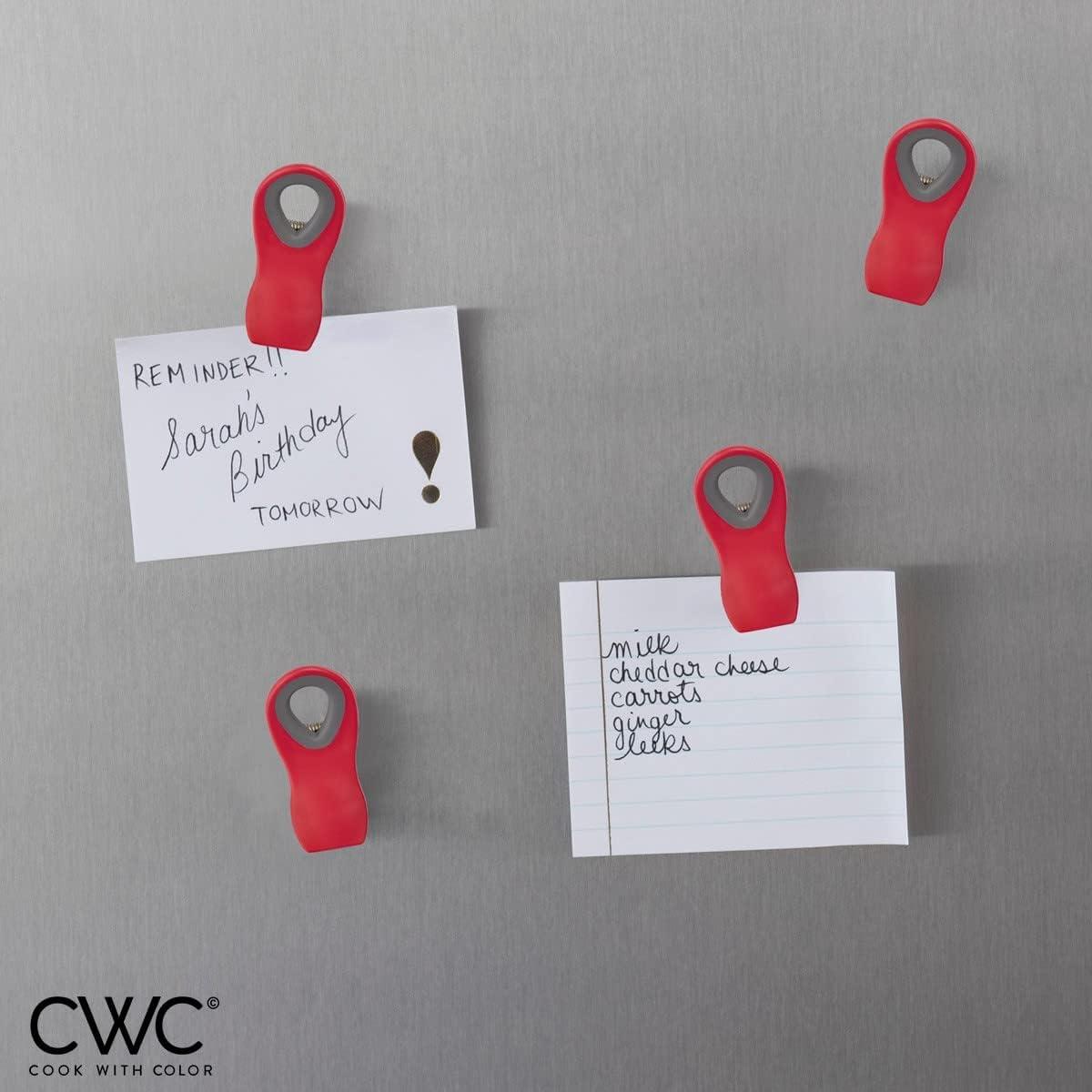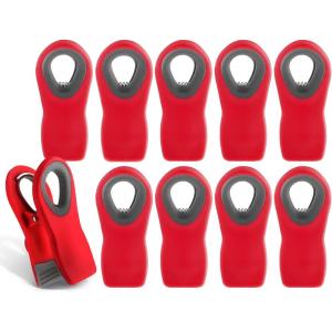 COOK WITH COLOR Bag Clips with Magnet- Food Clips, Chip Clips, Bag Clips for Food Storage with Airtight Seal Grip for Bread Bags, Snack Bags and Food Bags (White, Pack of 10)(Red)