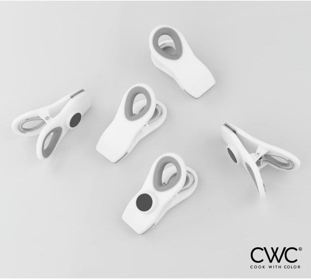 COOK WITH COLOR Bag Clips with Magnet- Food Clips, Chip Clips, Bag Clips for Food Storage with Airtight Seal Grip for Bread Bags, Snack Bags and Food Bags (White, Pack of 10)(Multicolor)