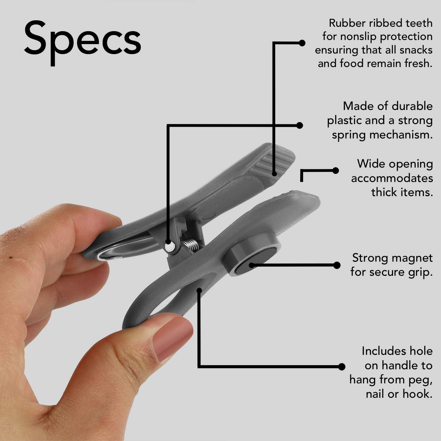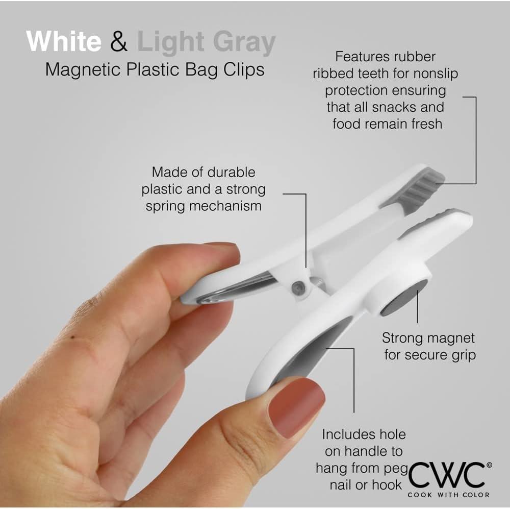 COOK WITH COLOR Bag Clips with Magnet- Food Clips, Chip Clips, Bag Clips for Food Storage with Airtight Seal Grip for Bread Bags, Snack Bags and Food Bags (White, Pack of 10)(Grey)