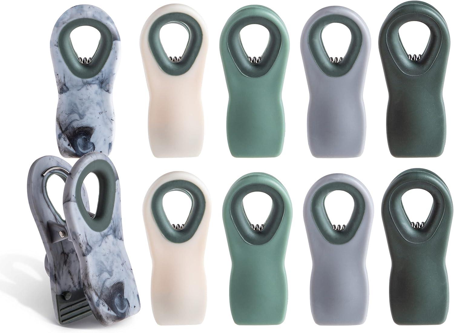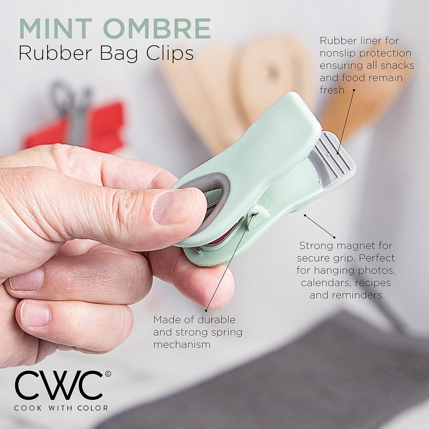 COOK WITH COLOR Bag Clips with Magnet- Food Clips, Chip Clips, Bag Clips for Food Storage with Airtight Seal Grip for Bread Bags, Snack Bags and Food Bags (White, Pack of 10)(Green Ombre)