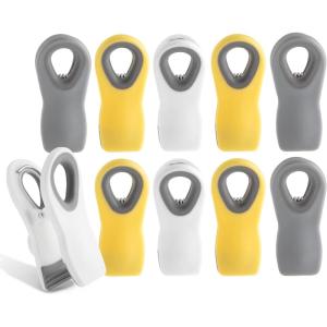 COOK WITH COLOR Bag Clips with Magnet- Food Clips, Chip Clips, Bag Clips for Food Storage with Airtight Seal Grip for Bread Bags, Snack Bags and Food Bags (White, Pack of 10)(Yellow and Grey)