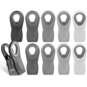 COOK WITH COLOR Bag Clips with Magnet- Food Clips, Chip Clips, Bag Clips for Food Storage with Airtight Seal Grip for Bread Bags, Snack Bags and Food Bags (White, Pack of 10)(Grey Ombre)
