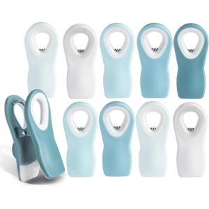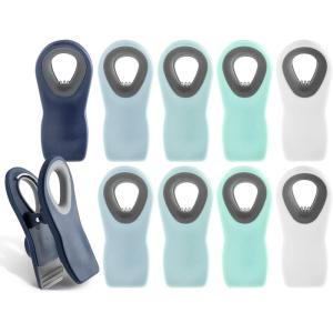 COOK WITH COLOR Bag Clips with Magnet- Food Clips, Chip Clips, Bag Clips for Food Storage with Airtight Seal Grip for Bread Bags, Snack Bags and Food Bags (White, Pack of 10)(Blue Ombre)