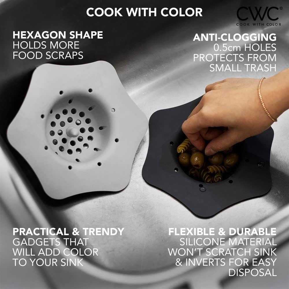 • COOK WITH COLOR Kitchen Sink Strainer, Silicone, Flexible Sink Strainer, Sink Drain Strainer, Black/Charcoal(Charcoal / Gray)