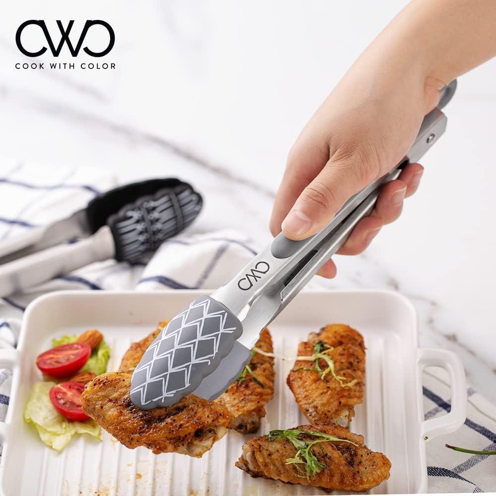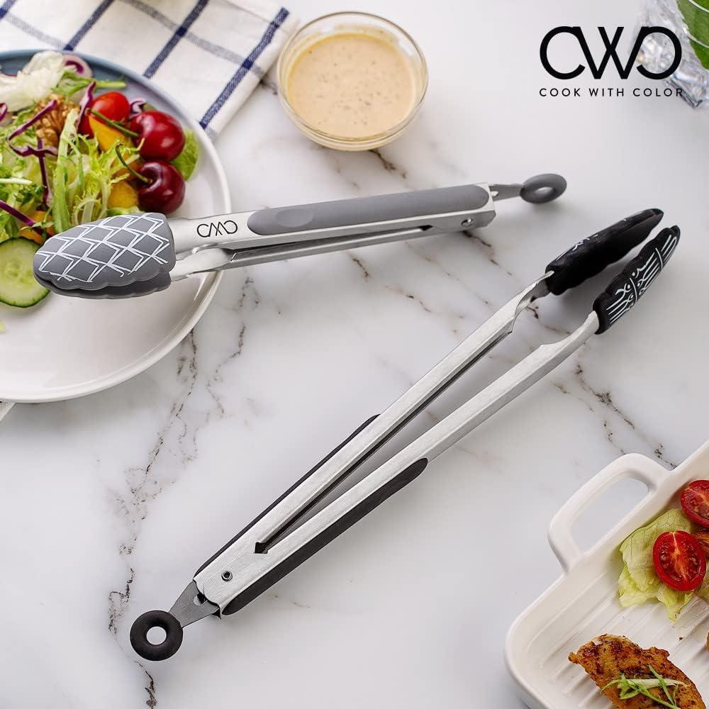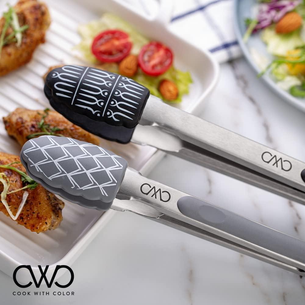 COOK WITH COLOR Stainless Steel Silicone Tipped Kitchen & BBQ Tongs Set, 2 Pc Tongs, Blue(Charcoal)
