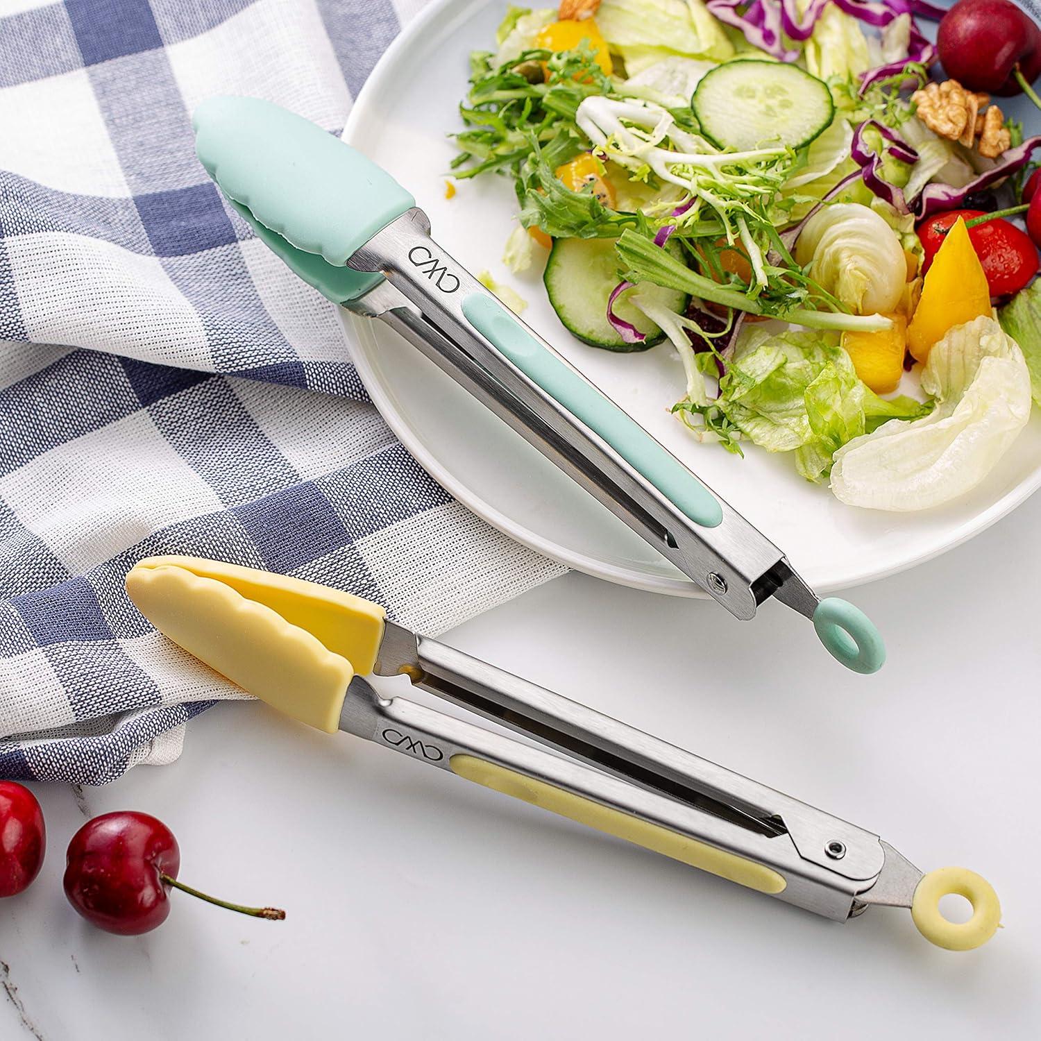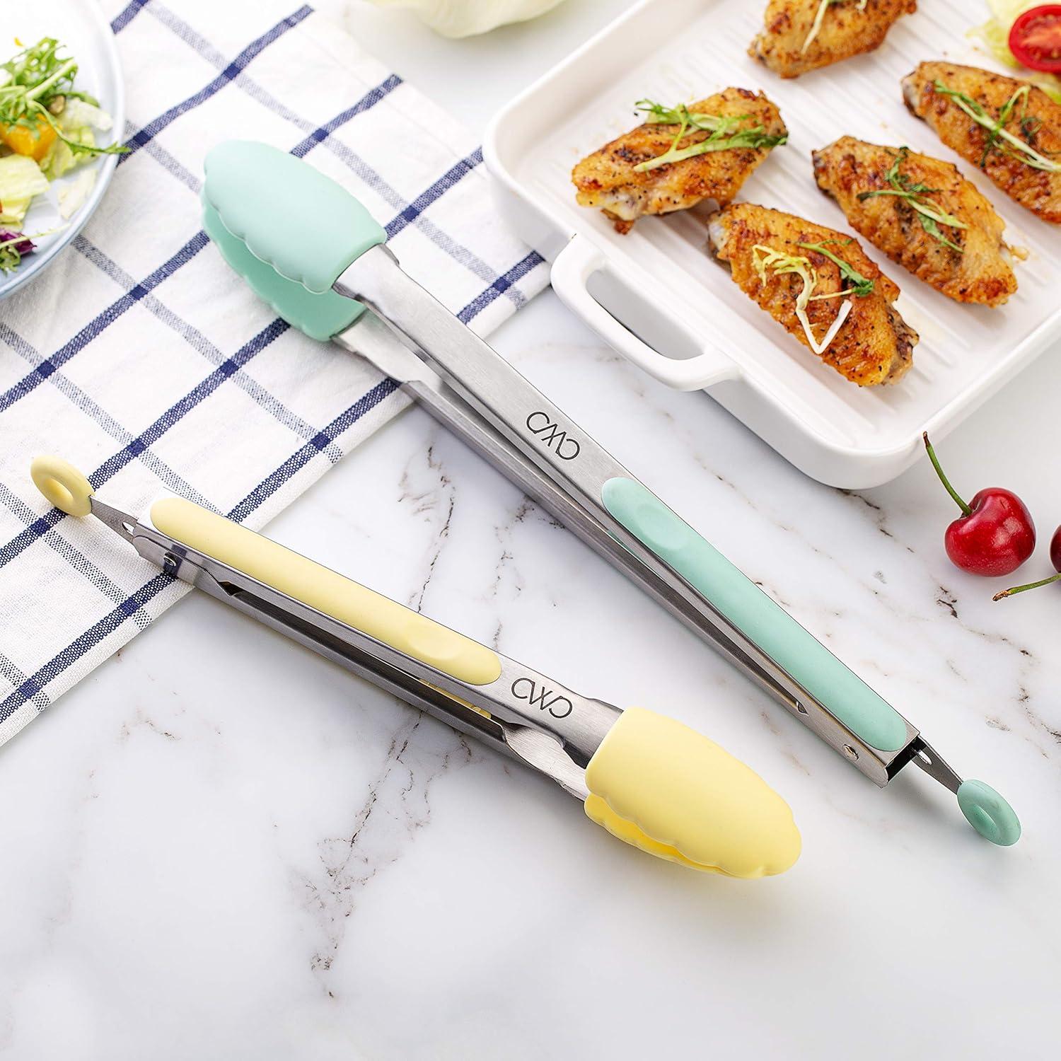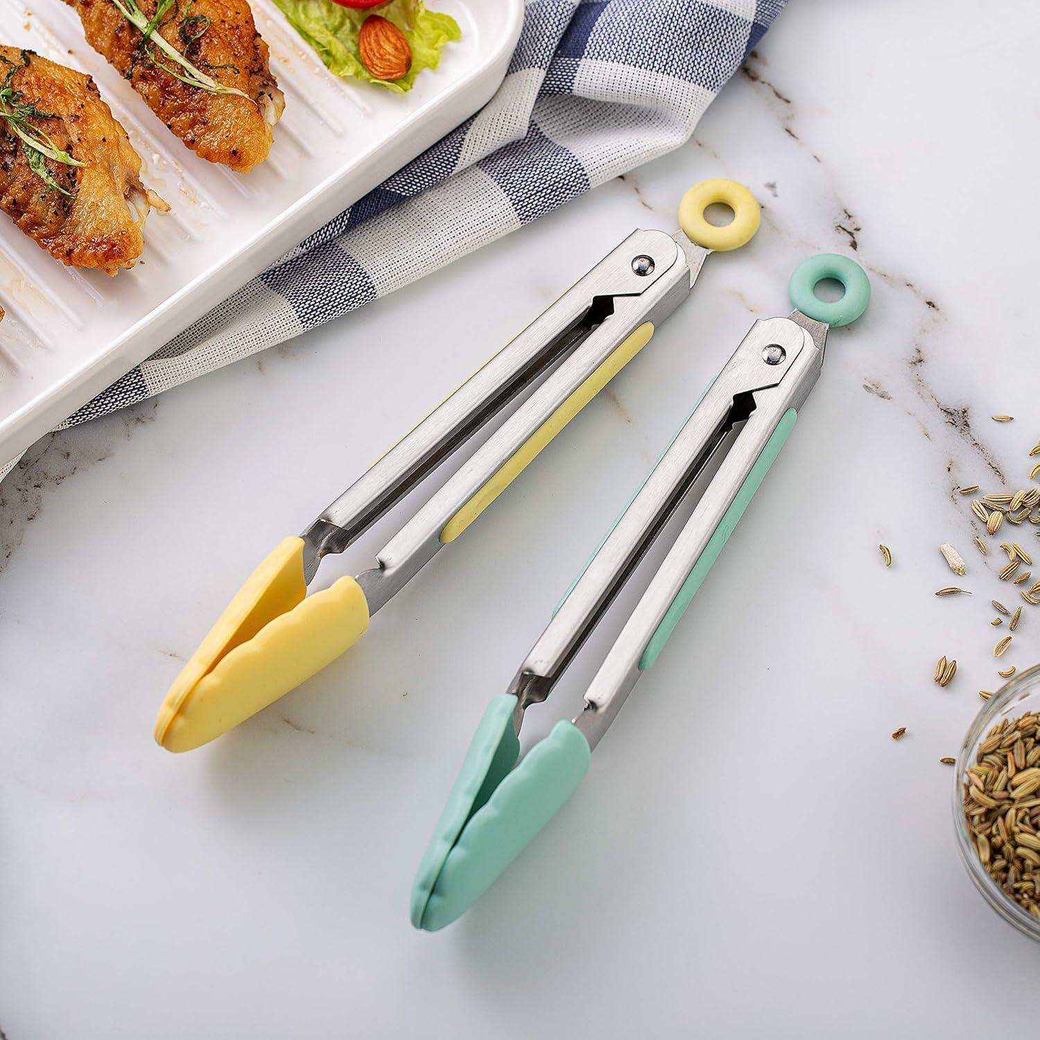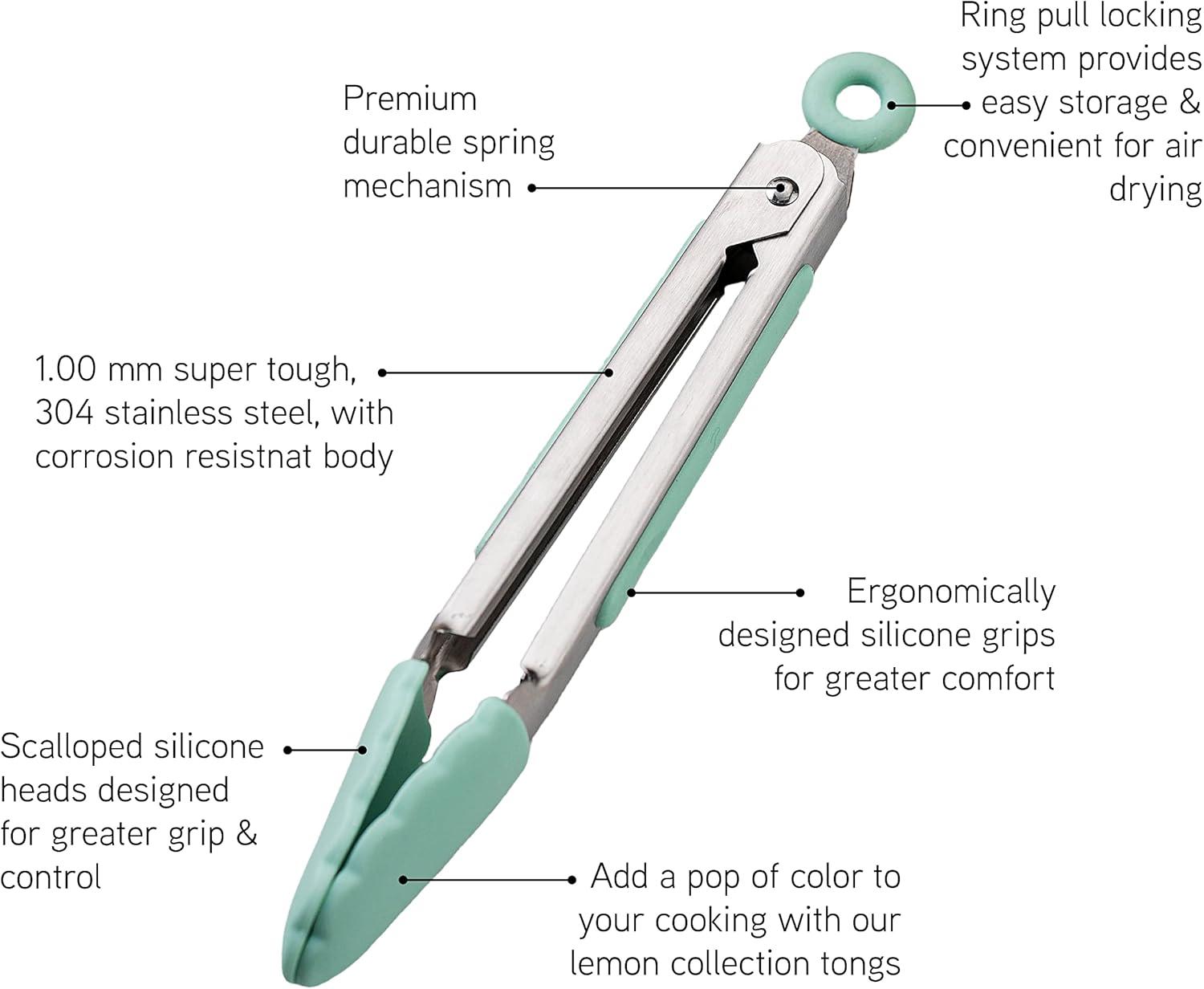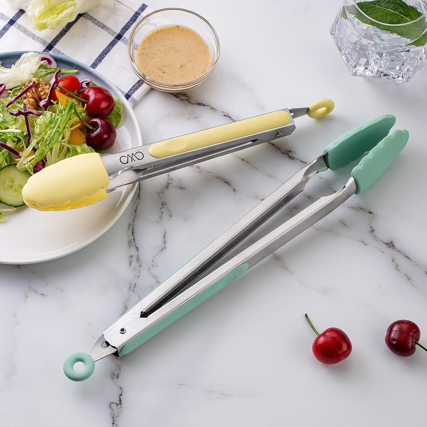 COOK WITH COLOR Stainless Steel Silicone Tipped Kitchen & BBQ Tongs Set, 2 Pc Tongs, Blue(Mint and Yellow)
