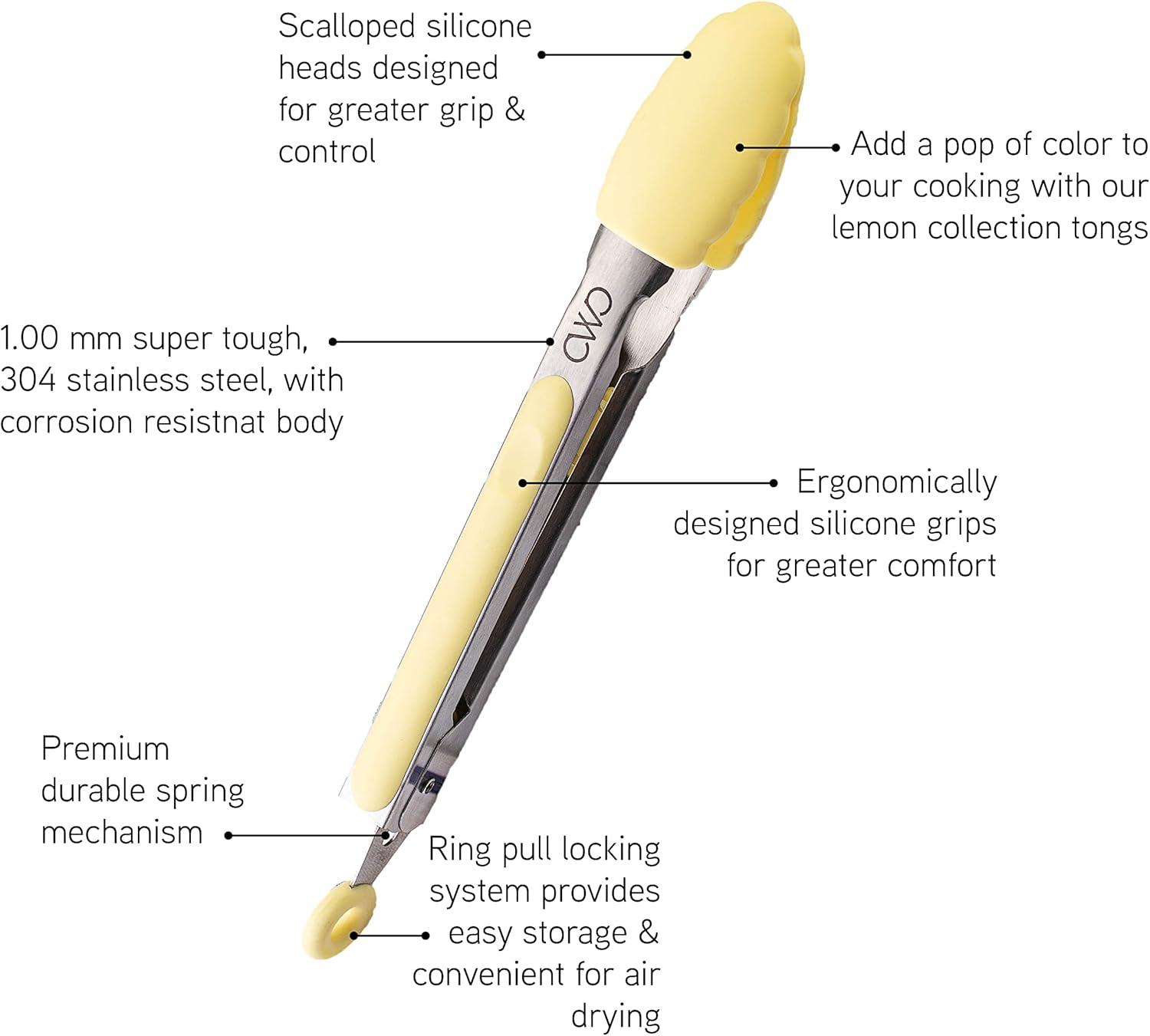 COOK WITH COLOR Stainless Steel Silicone Tipped Kitchen & BBQ Tongs Set, 2 Pc Tongs, Blue(Lemon Collection)
