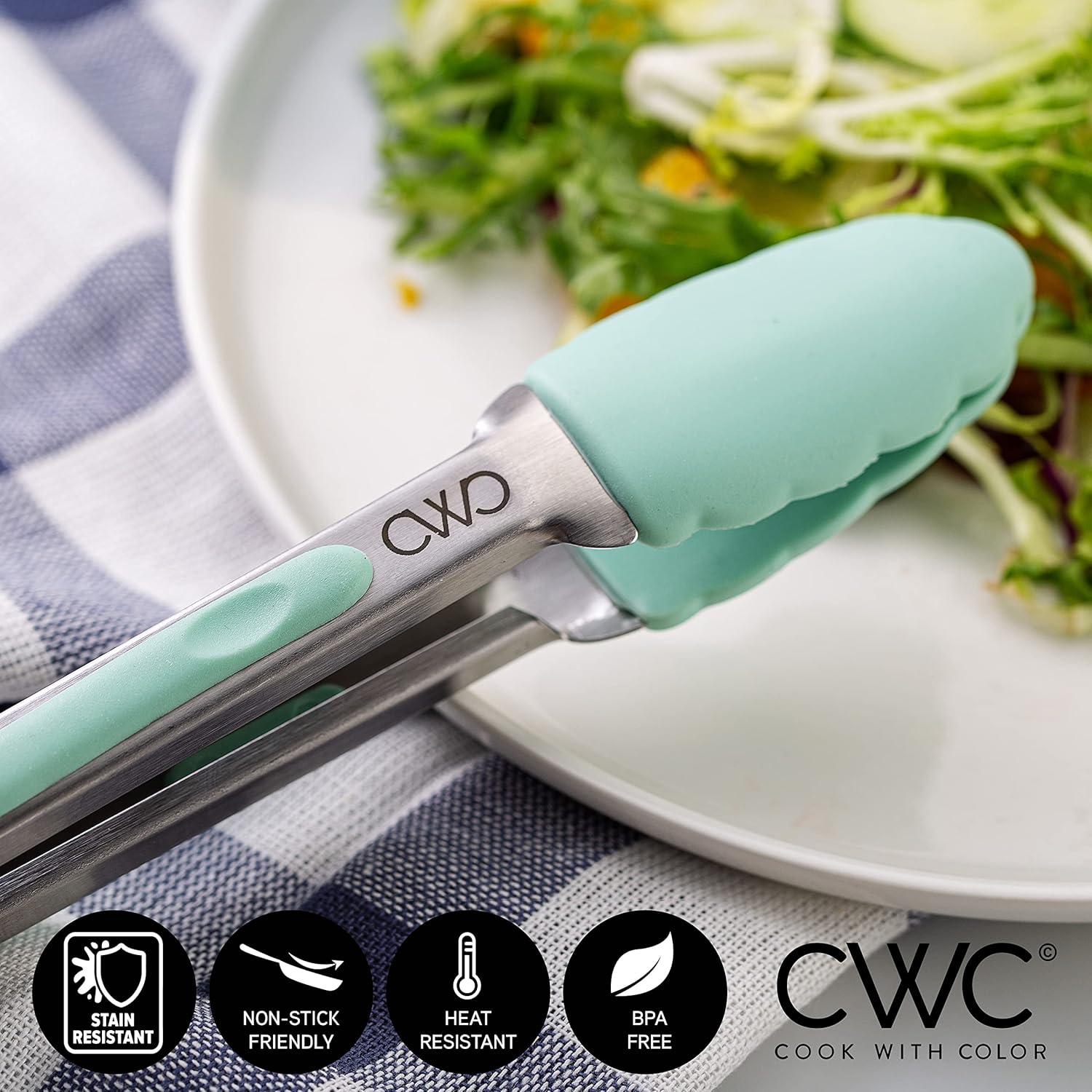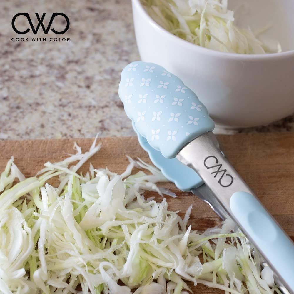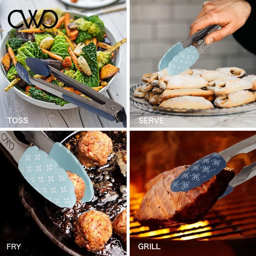 COOK WITH COLOR Stainless Steel Silicone Tipped Kitchen & BBQ Tongs Set, 2 Pc Tongs, Blue(Mint)