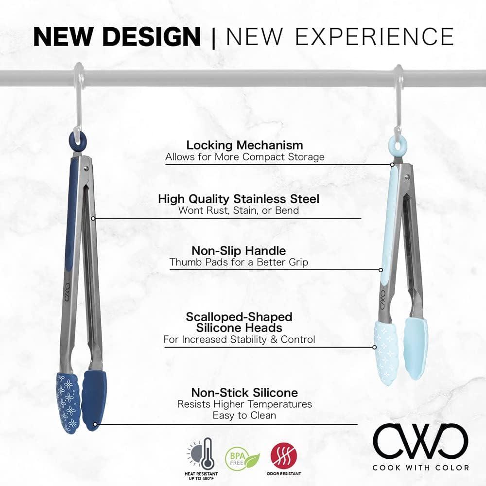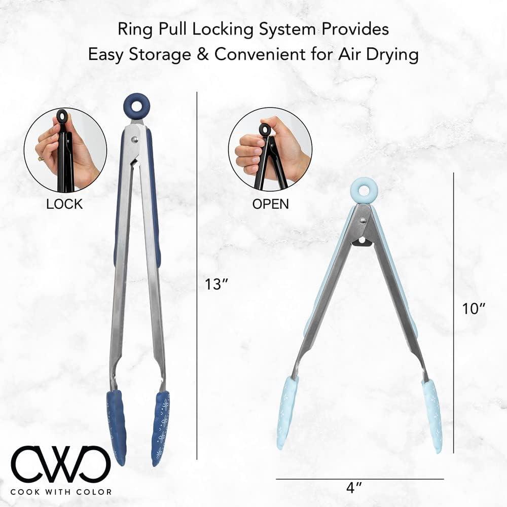 COOK WITH COLOR Stainless Steel Silicone Tipped Kitchen & BBQ Tongs Set, 2 Pc Tongs, Blue(Spring Collection)