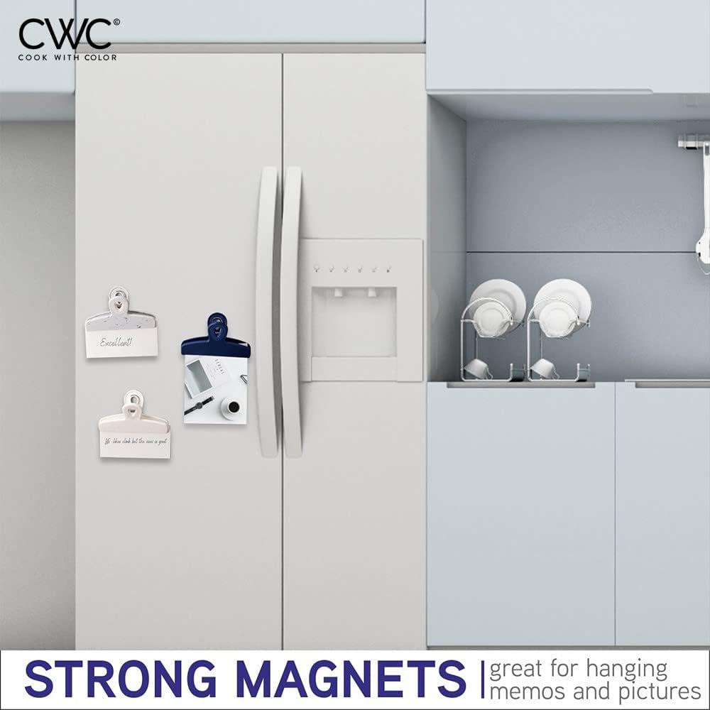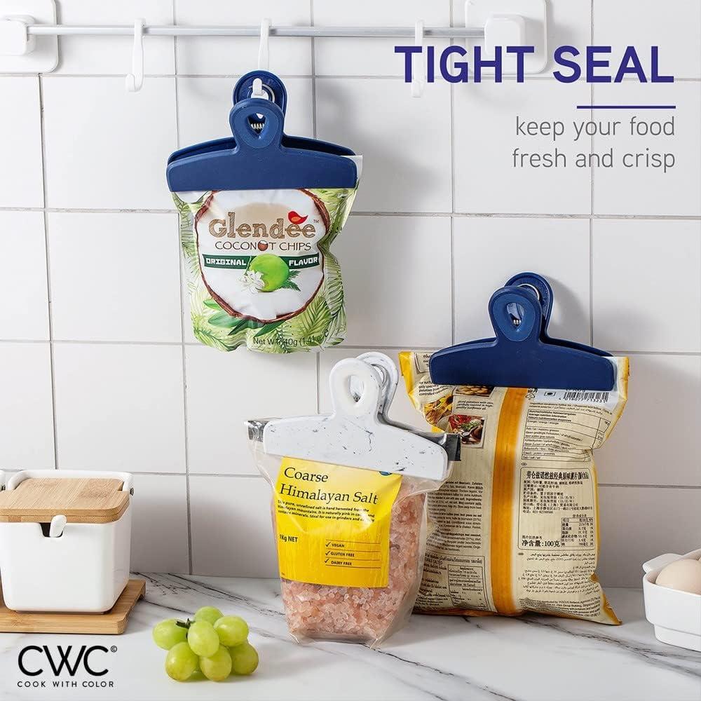 COOK WITH COLOR Bag Clips – Heavy Duty Chip Clip and Refrigerator Magnet Clips for Food Storage with Air Tight Seal Grip, Mint, Pack of 4 Large Clips(Blue and White)