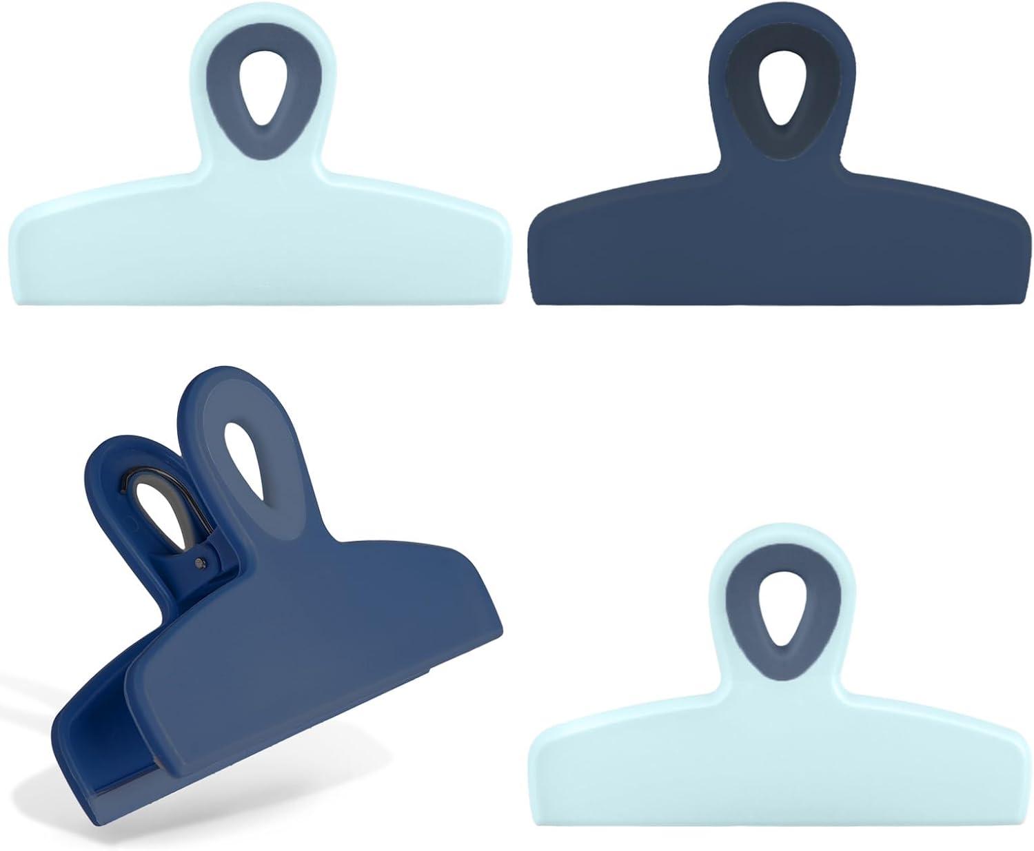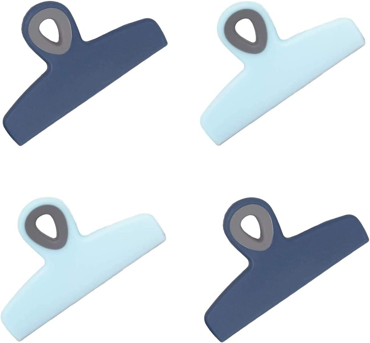 COOK WITH COLOR Bag Clips – Heavy Duty Chip Clip and Refrigerator Magnet Clips for Food Storage with Air Tight Seal Grip, Mint, Pack of 4 Large Clips(Blue Ombre)