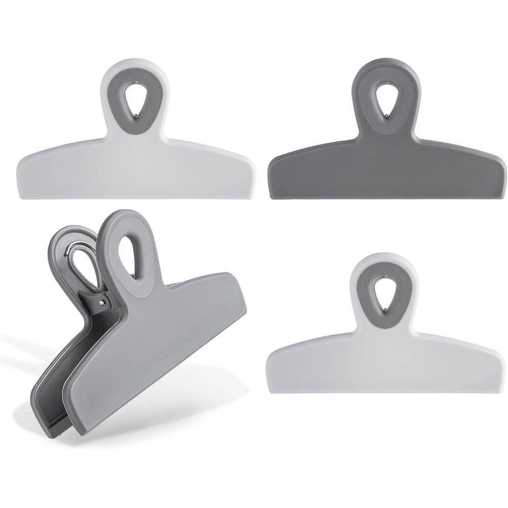 COOK WITH COLOR Bag Clips – Heavy Duty Chip Clip and Refrigerator Magnet Clips for Food Storage with Air Tight Seal Grip, Mint, Pack of 4 Large Clips(Grey Ombre)