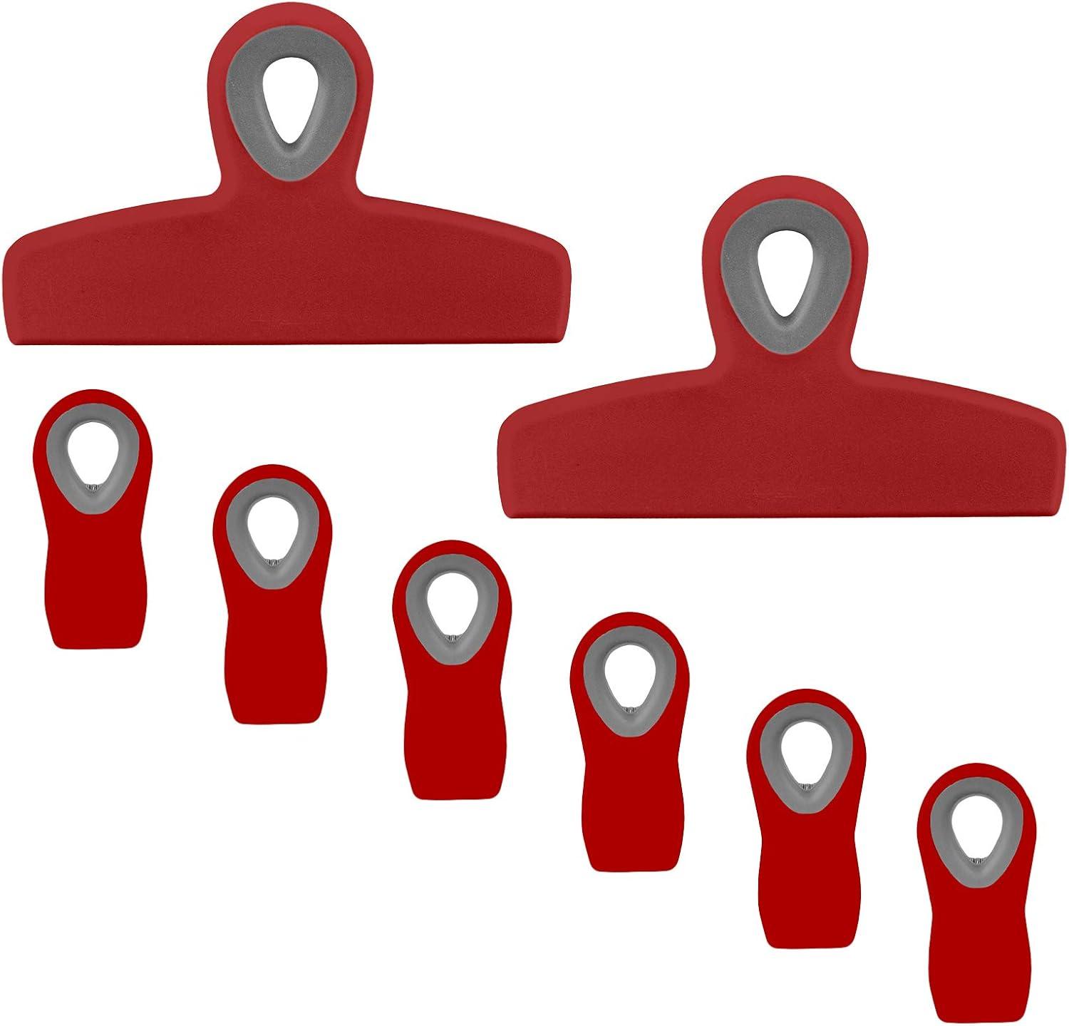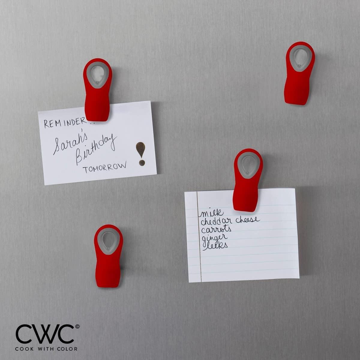 COOK WITH COLOR Bag Clips – Heavy Duty Chip Clip and Refrigerator Magnet Clips for Food Storage with Air Tight Seal Grip, Mint, Pack of 4 Large Clips(Red)