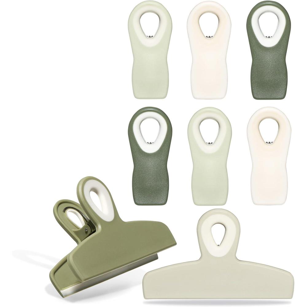 COOK WITH COLOR Bag Clips – Heavy Duty Chip Clip and Refrigerator Magnet Clips for Food Storage with Air Tight Seal Grip, Mint, Pack of 4 Large Clips(Sage)