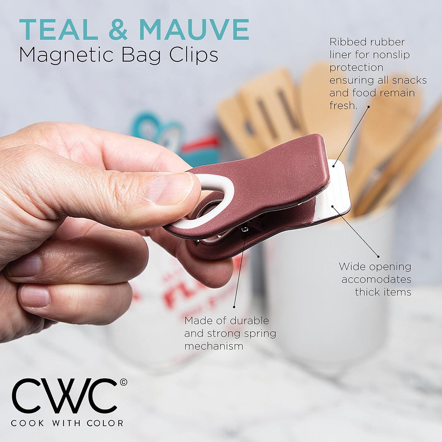 COOK WITH COLOR Bag Clips – Heavy Duty Chip Clip and Refrigerator Magnet Clips for Food Storage with Air Tight Seal Grip, Mint, Pack of 4 Large Clips(Teal and Mauve)