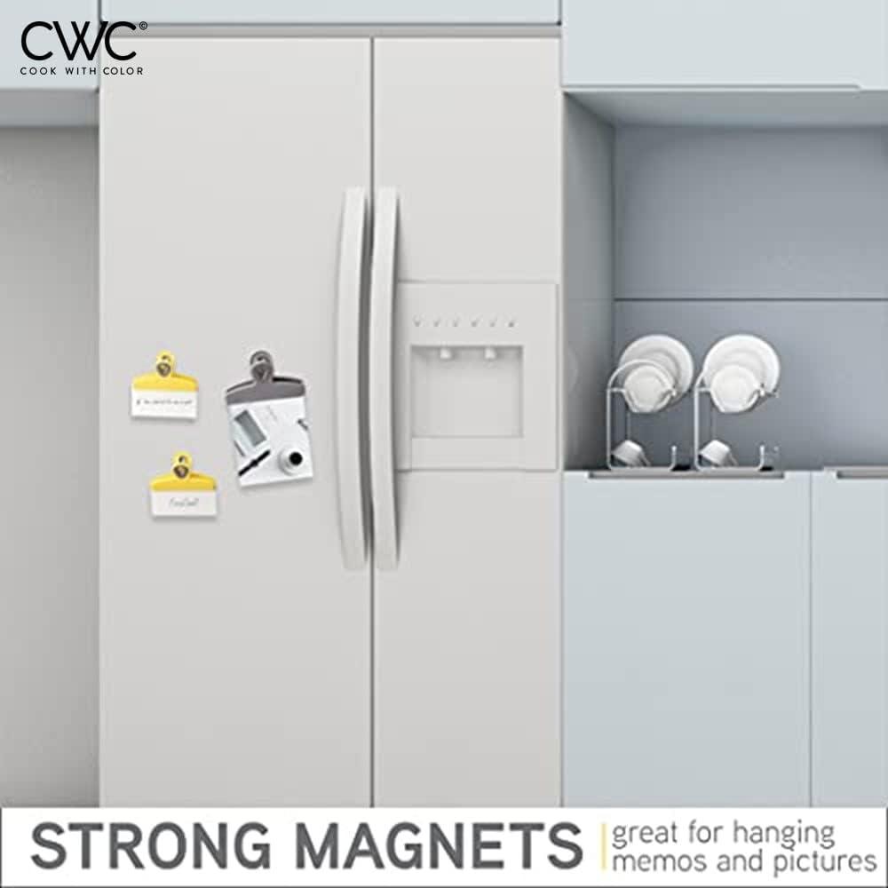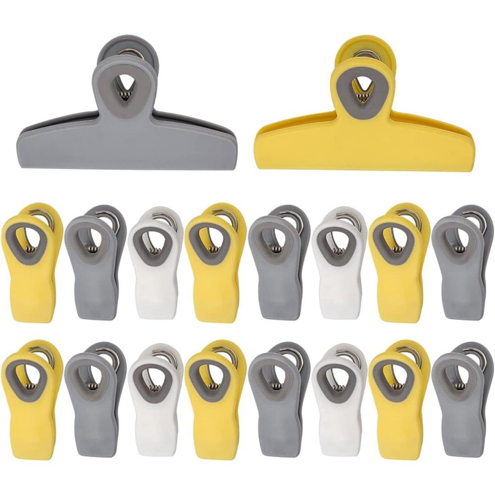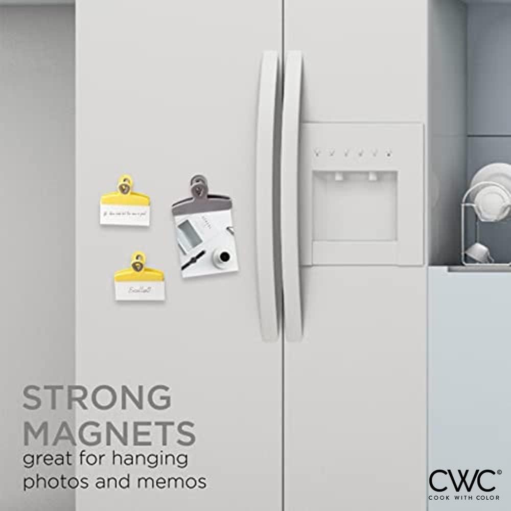 COOK WITH COLOR Bag Clips – Heavy Duty Chip Clip and Refrigerator Magnet Clips for Food Storage with Air Tight Seal Grip, Mint, Pack of 4 Large Clips(Yellow and Grey)