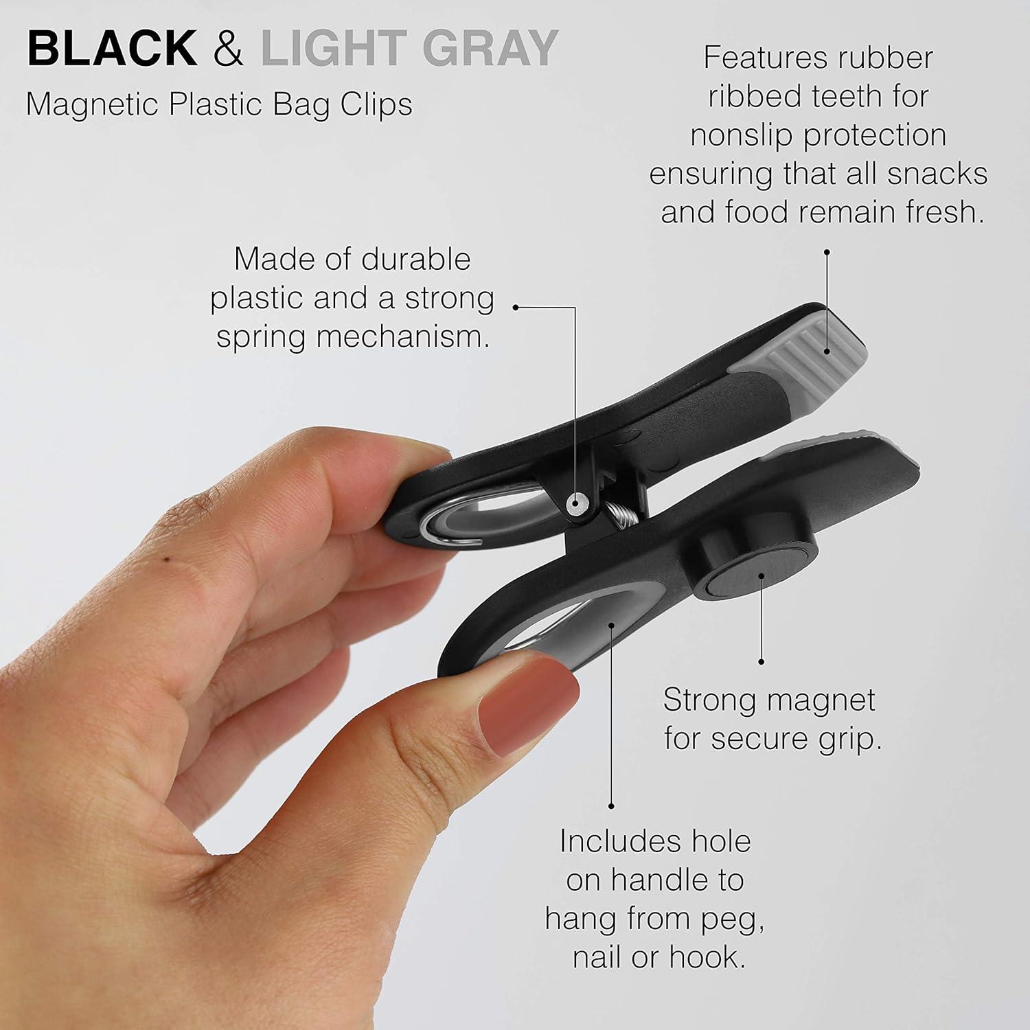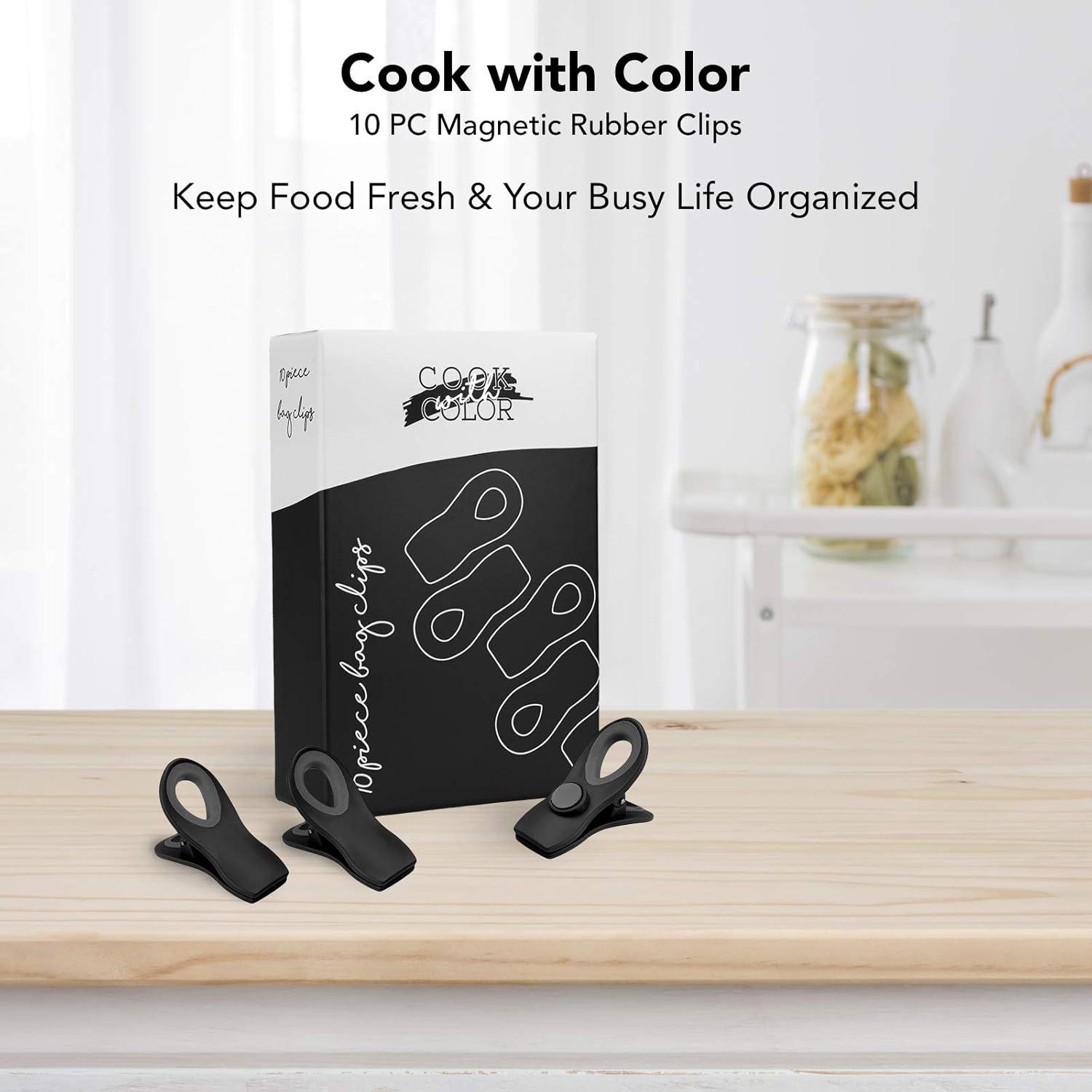 COOK WITH COLOR Bag Clips with Magnet- Food Clips, Chip Clips, Bag Clips for Food Storage with Airtight Seal Grip for Bread Bags, Snack Bags and Food Bags (White, Pack of 10)(Black)