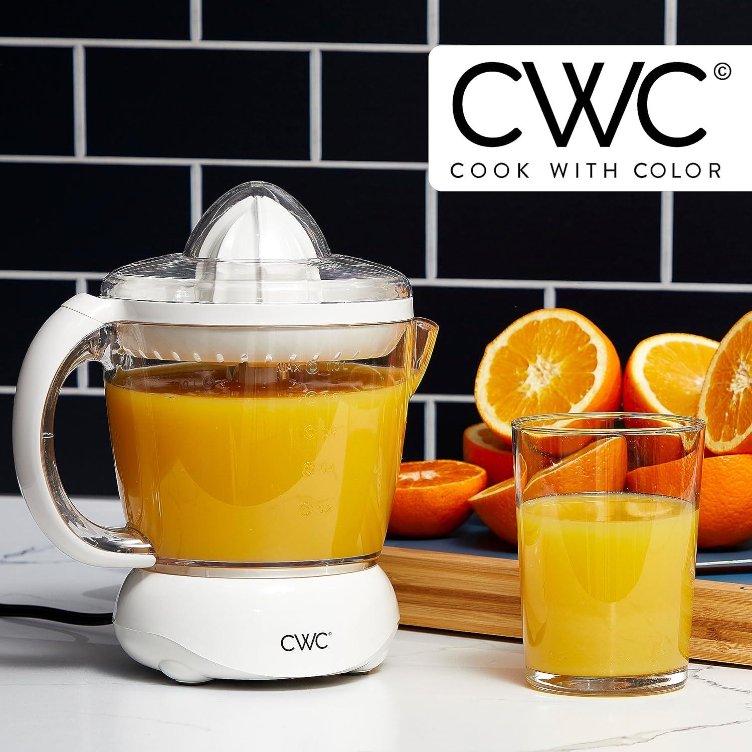 Introducing the Cook with Color Citrus Juicer, the great companion for your juicing needs. With its powerful 25-Watt motor and convenient 1-touch dual direction pulse operation, this juicer takes the hassle out of squeezing fresh citrus juice. Featuring a generous 4 cup (1L) capacity, our citrus juicer allows you to juice ample amounts of citrus fruits without constant refills. Whether you're preparing a pitcher of refreshing lemonade, a tangy orange juice, or a zesty lime cocktail, this juicer has you covered. The 1-touch dual direction pulse operation ensures efficient extraction, extracting every last drop of juice from your favorite citrus fruits. Simply press down on the citrus fruit and let the juicer do the rest. The dual direction feature ensures maximum juice extraction, giving you the most out of each fruit. Designed with your convenience in mind, the Cook with Color Citrus Juicer boasts a user-friendly design. The sturdy handle provides a comfortable grip, allowing for easy operation. The easy-pour spout prevents spills and drips, ensuring a mess-free juicing experience. Clear measurement markings on the juicer's body make it easy to measure the amount of juice you need for your recipes. Not only is this juicer functional, but it also adds a vibrant touch to your kitchen. Available in a range of vibrant shades, it brings a pop of color to your countertop. Choose the color that suits your style and brightens up your cooking space. Cleaning is a breeze with this juicer. The detachable parts are dishwasher safe, making it easy to clean up after juicing. Spend less time on cleanup and more time enjoying your freshly squeezed juice. Whether you're a health-conscious individual, a mixologist, or simply enjoy the refreshing taste of citrus juice, the Cook with Color Citrus Juicer is a must-have kitchen gadget. Get ready to indulge in the goodness of freshly squeezed juice with ease and style.