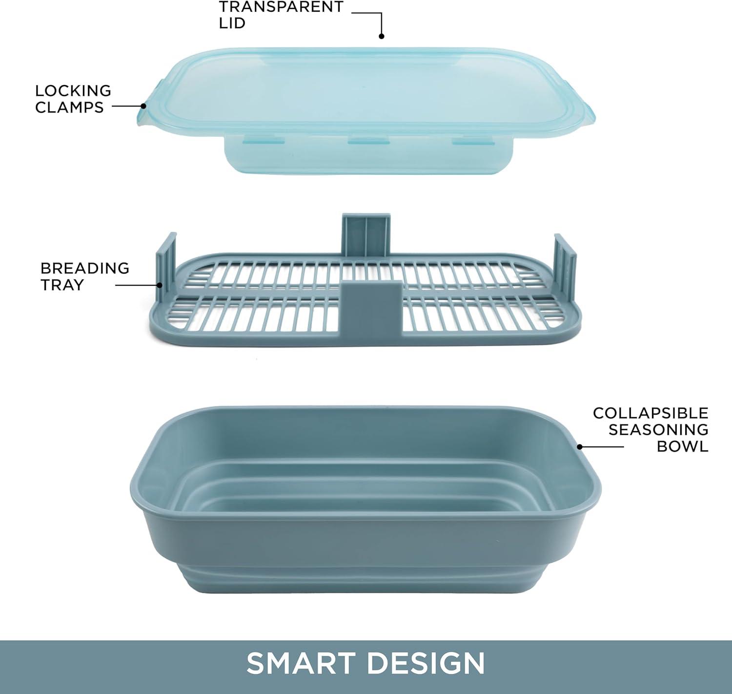 COOK WITH COLOR Collapsible Batter Bowl – Mess Free Breading Shaker Container – Great for Fried Fish, Fried Chicken, Onion Rings, Wings & More, Cream(Blue)