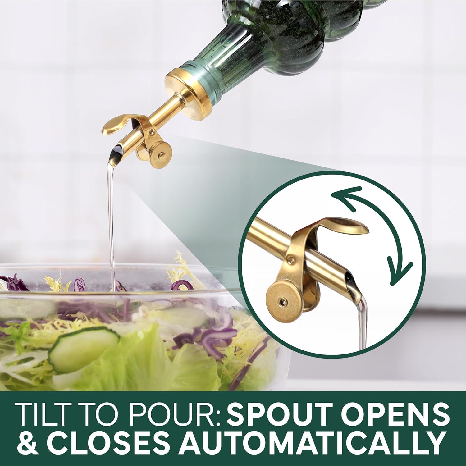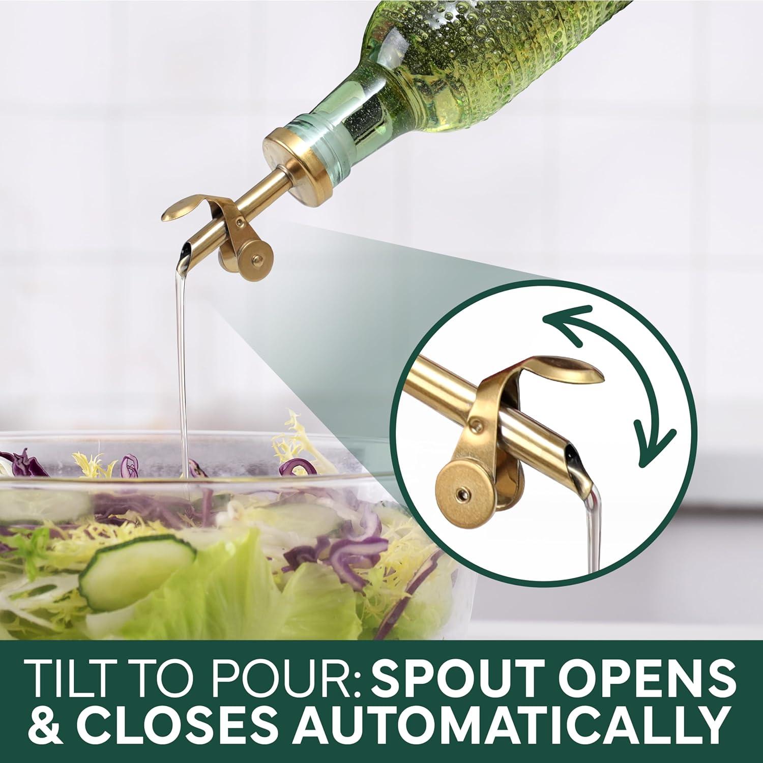 Auto Flip Spouts – Drip free and mess free with our auto flip spounts. You'll get precise and smooth dispensions of your favorite oils and vinegars.