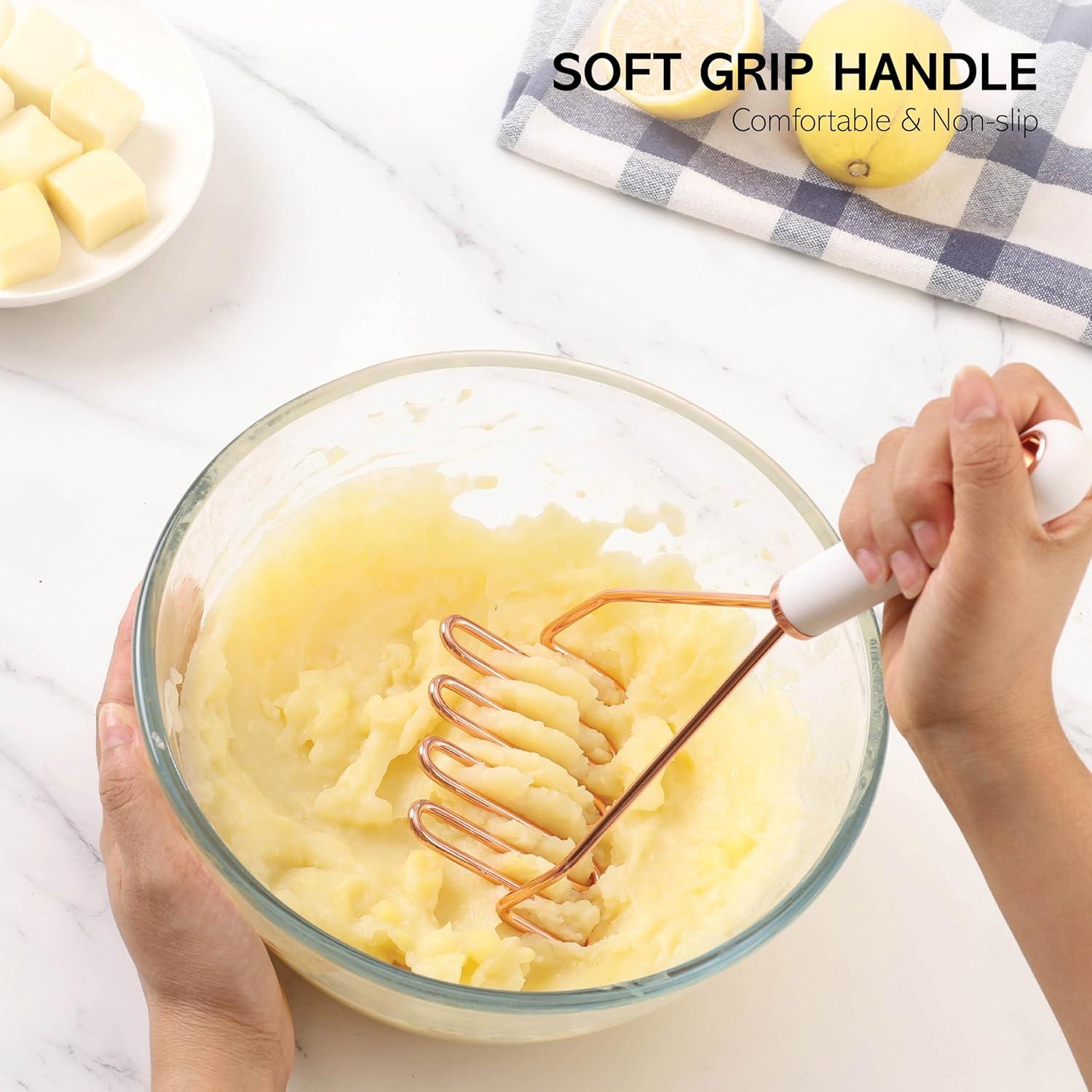 Stainless steel gadgets with comfortable, soft touch, good grip, non-slip handles that absorb pressure and make it easier on your hands.