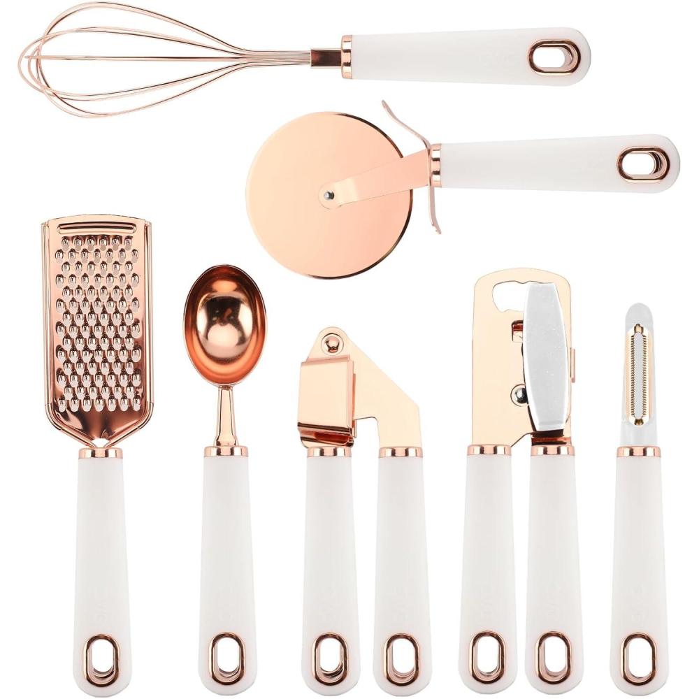 COOK WITH COLOR Kitchen Gadget Set Copper Plated Stainless Steel Utensils with Soft Touch Handles, Marble White, 7 Pieces(Copper White)