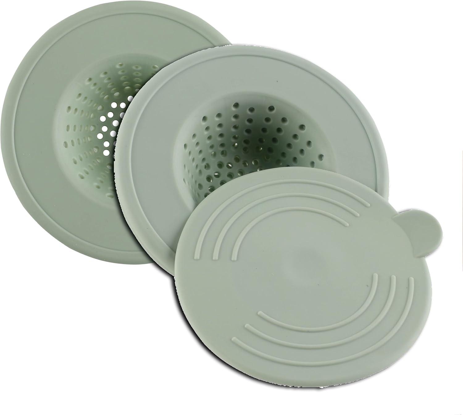 COOK WITH COLOR Kitchen Sink Strainer, Silicone, Flexible Sink Strainer, Sink Drain Strainer, Black/Charcoal(3 Pc Sage)