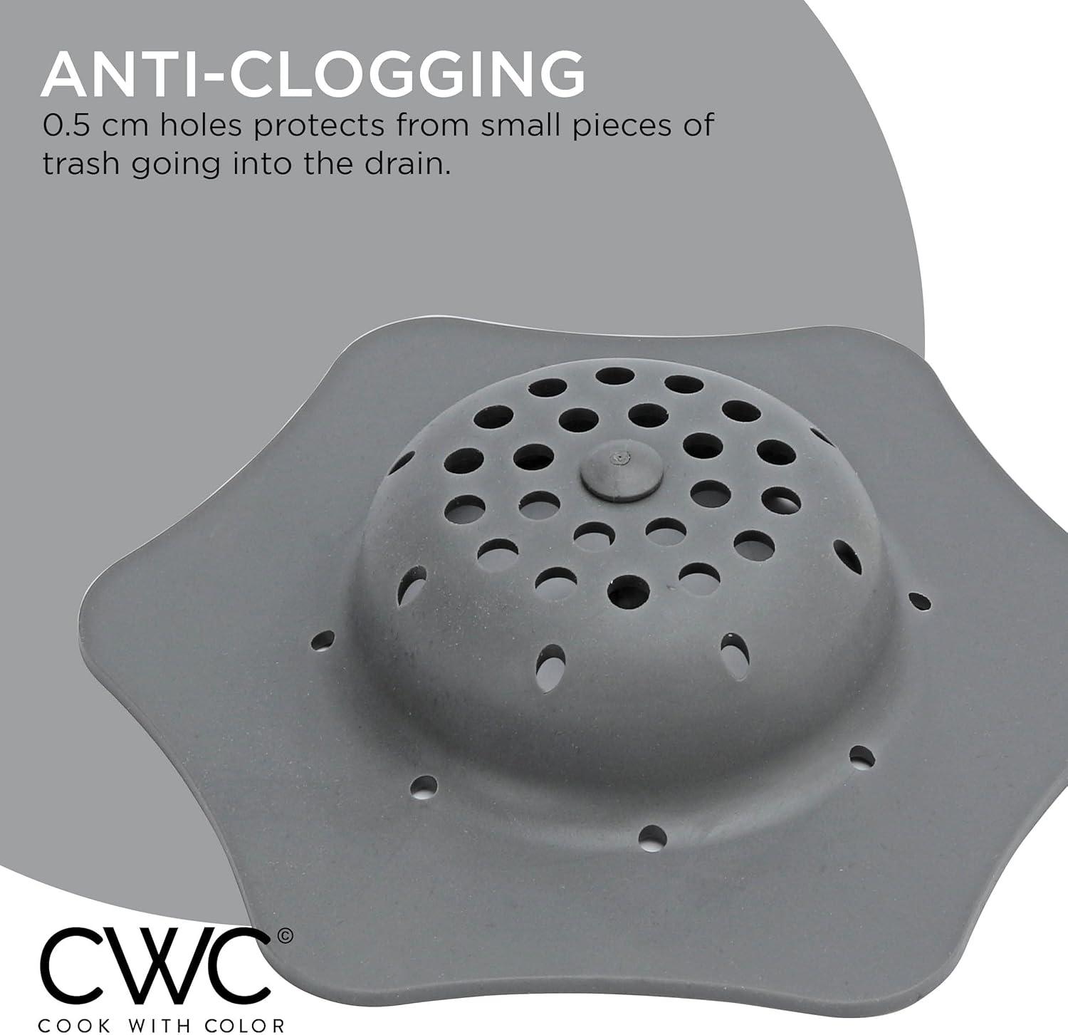 COOK WITH COLOR Kitchen Sink Strainer, Silicone, Flexible Sink Strainer, Sink Drain Strainer, Black/Charcoal(Black/Charcoal)