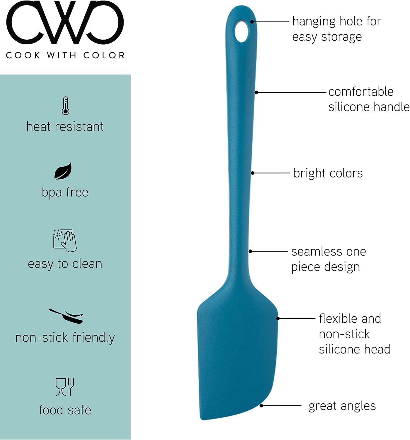 Your time in the kitchen is just about to become more colorful and exciting while getting the job done to greation! COOK with COLOR’s Mini Prep Tools are designed for preparing and serving small items, such as appetizers and desserts and handling them with a gentle touch. Additionally, they can be a great tool for little cooks in training, and when space is limited and long handled utensils get in the way. Mini utensils can get lots of jobs done in a better, more efficient way! Try scraping the last drops out of a jar, the mini’s will get all those last remaining spots that you are having trouble reaching. The mini whisk will whip up small portions of eggs to greation without sloshing over the sides and creating unnecessary mess and clean up. The Spatula is super handy for spreading icings and toppings on cakes smoothly and professionally, or for if you’re one of those who needs to spread cream cheese on a bagel like it’s a mini birth day cake. The mini tongs will come into great use for indoor and outdoor grilling when you need to get closer to the fire and give you the control you need to achieve just the right taste and texture. The spoons will help you dole out portions and dressings neatly and enhance your foods presentation. Whether you are saving on space or just feel like adding this cool, trendy and exciting set to your kitchen, once you have these hanging around you will wonder how you managed without them! COOK with COLOR – cook with flair! Fun and versatile cooking tools and gadgets!