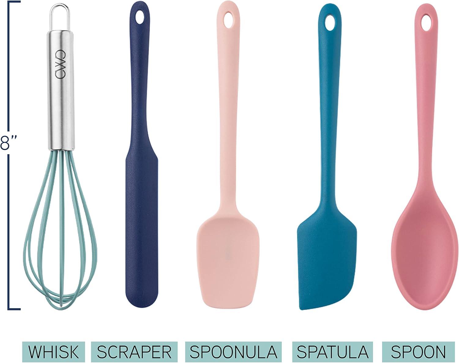 Cook With Color Kitchen Utensil Set – Silicone Kitchen Tools, Whisk, Tong, Spatula, Spoonula and Spoon, Pink and Navy