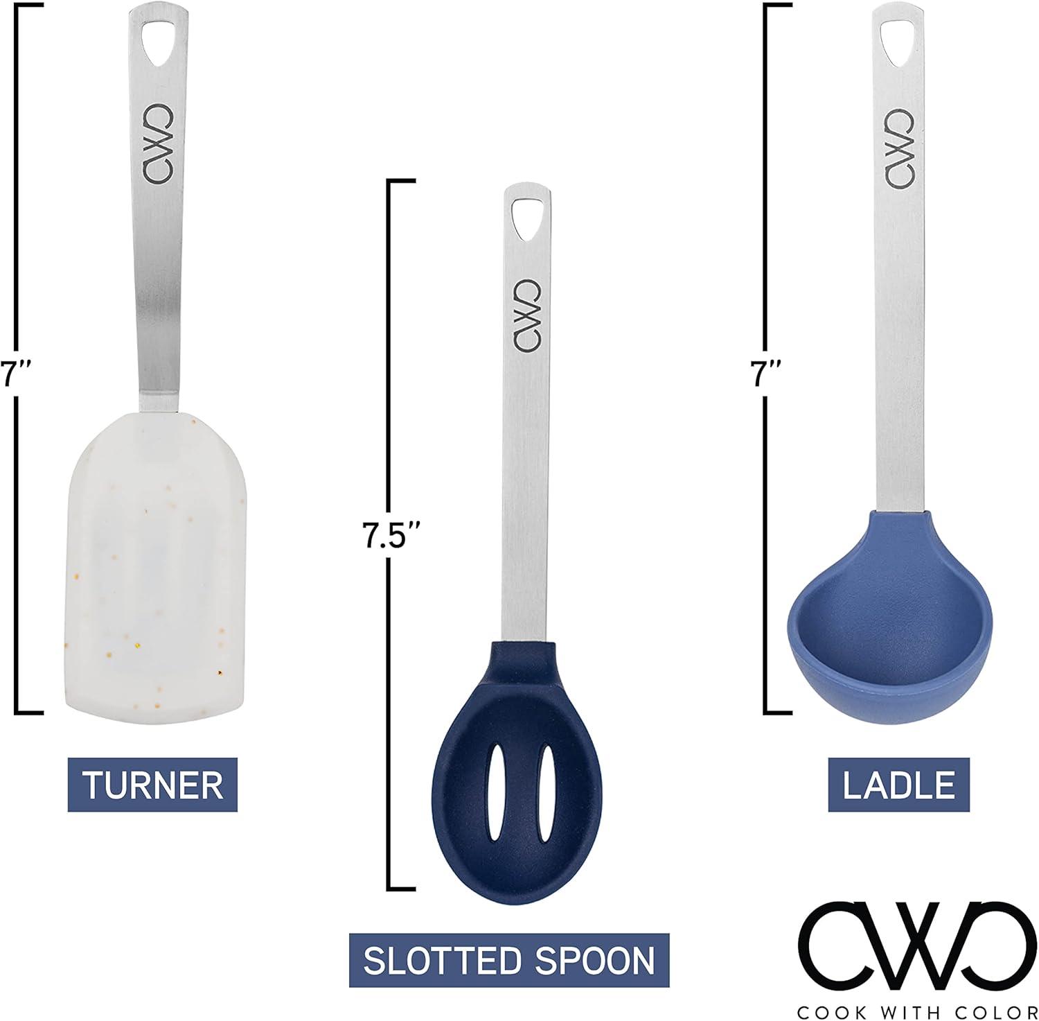 COOK WITH COLOR MINI Kitchen Utensil Set- Stainless Steel Handles with Silicone Kitchen Tools, 3 Piece Set, Navy