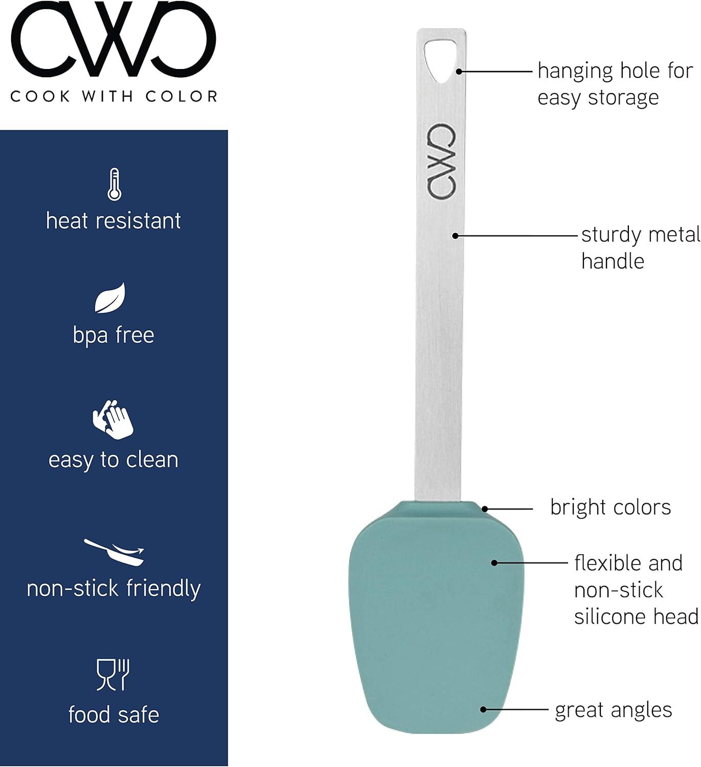 COOK WITH COLOR will give you every reason to love your kitchen. Get ready for your time in the kitchen to become even more fun with our mini utensils. Silicone tips and stainless steel handles are the great go to tools for cooking, baking and frying.