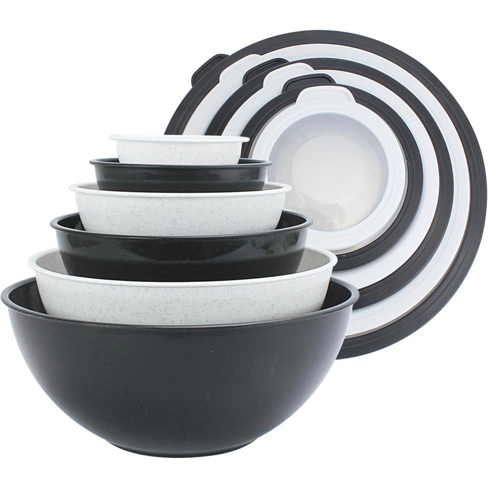 Set includes 6 plastic bowls and 6 TPR lids; Bowl capacity of 0.32 QT, 0.74 QT, 1.37 QT, 3.69 QT and 5.8 QT.