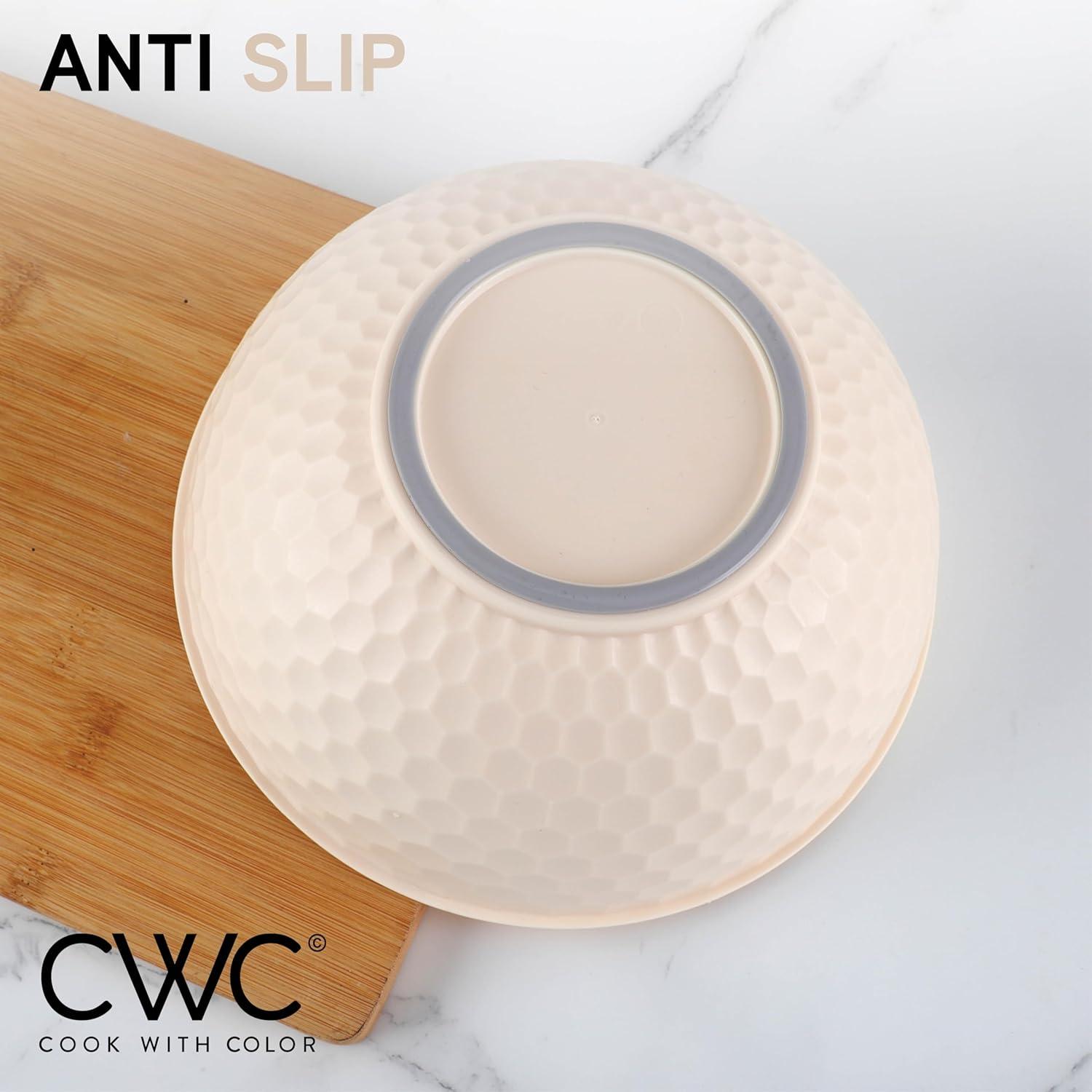 COOK WITH COLOR Nesting Mixing Bowls – 12 Piece Plastic Bowl Set with Lids, Microwave Safe (Green)(Cream Embossed)