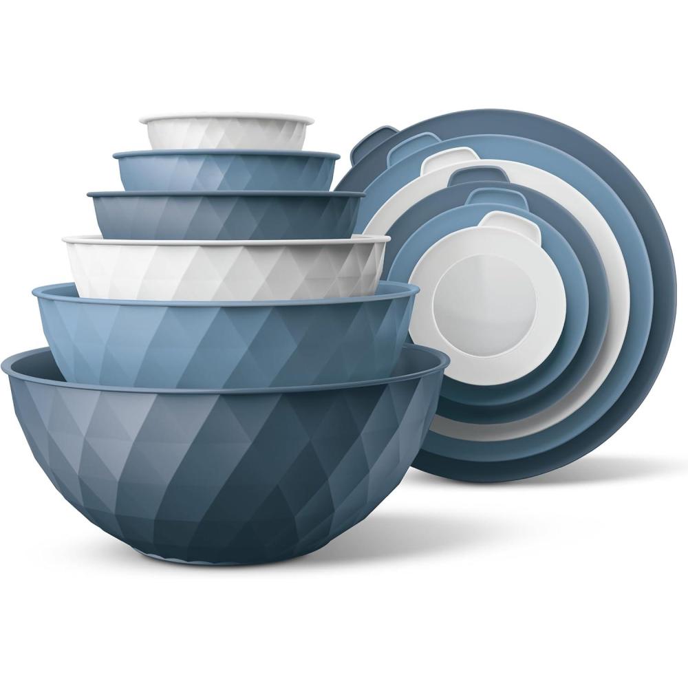 COOK WITH COLOR Nesting Mixing Bowls – 12 Piece Plastic Bowl Set with Lids, Microwave Safe (Green)(Denim Diamond)