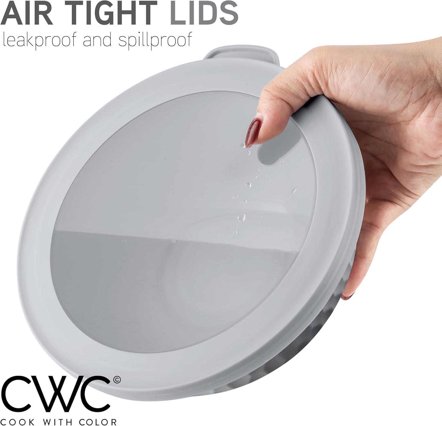 COOK WITH COLOR Nesting Mixing Bowls – 12 Piece Plastic Bowl Set with Lids, Microwave Safe (Green)(Grey Embossed)