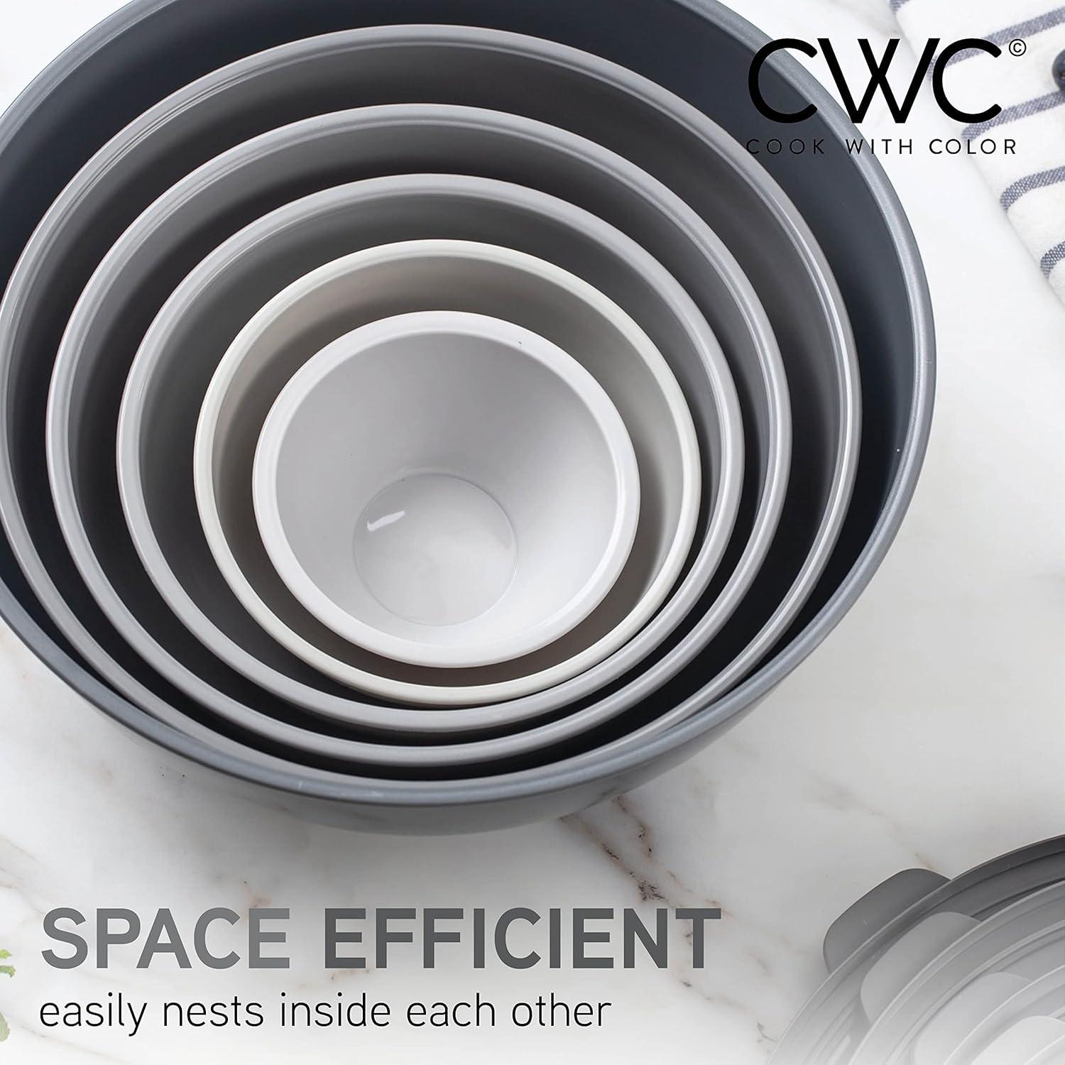 COOK WITH COLOR Nesting Mixing Bowls – 12 Piece Plastic Bowl Set with Lids, Microwave Safe (Green)(Grey TPR Lids)