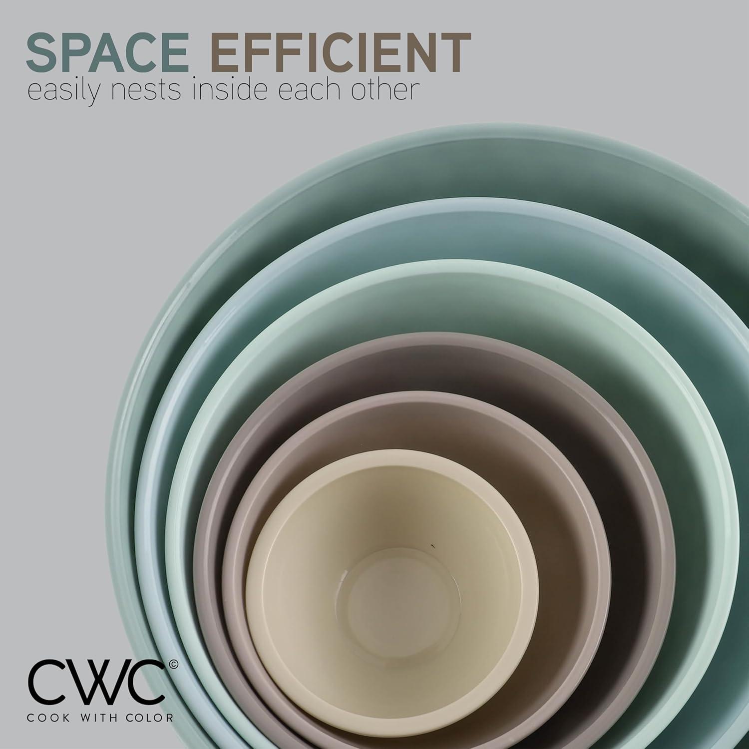 COOK WITH COLOR Nesting Mixing Bowls – 12 Piece Plastic Bowl Set with Lids, Microwave Safe (Green)(Mint Embossed)