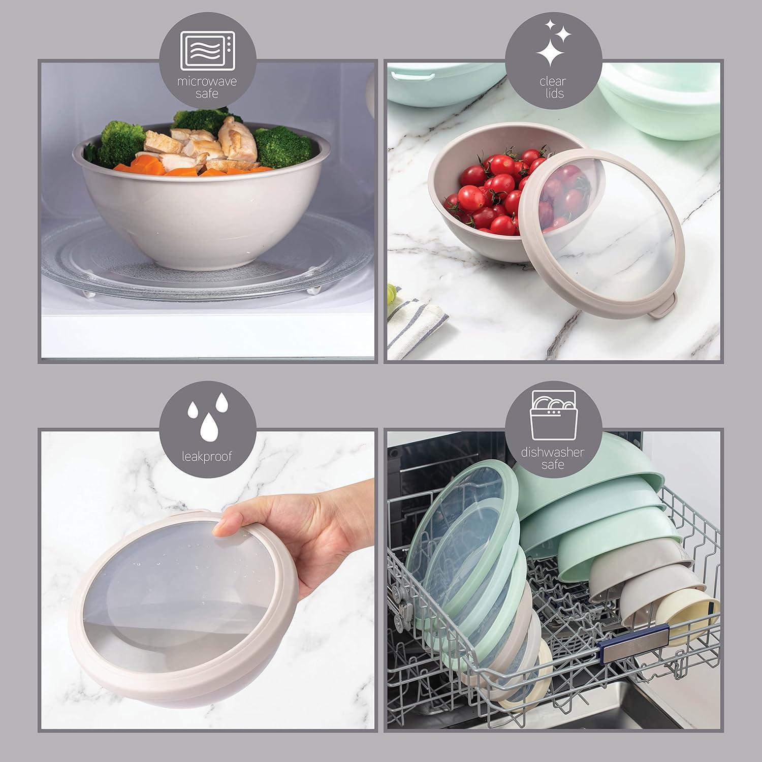 Set includes 6 plastic bowls and 6 TPR lids; Bowl capacity of 0.32 QT, 0.74 QT, 1.37 QT, 3.69 QT and 5.8 QT.