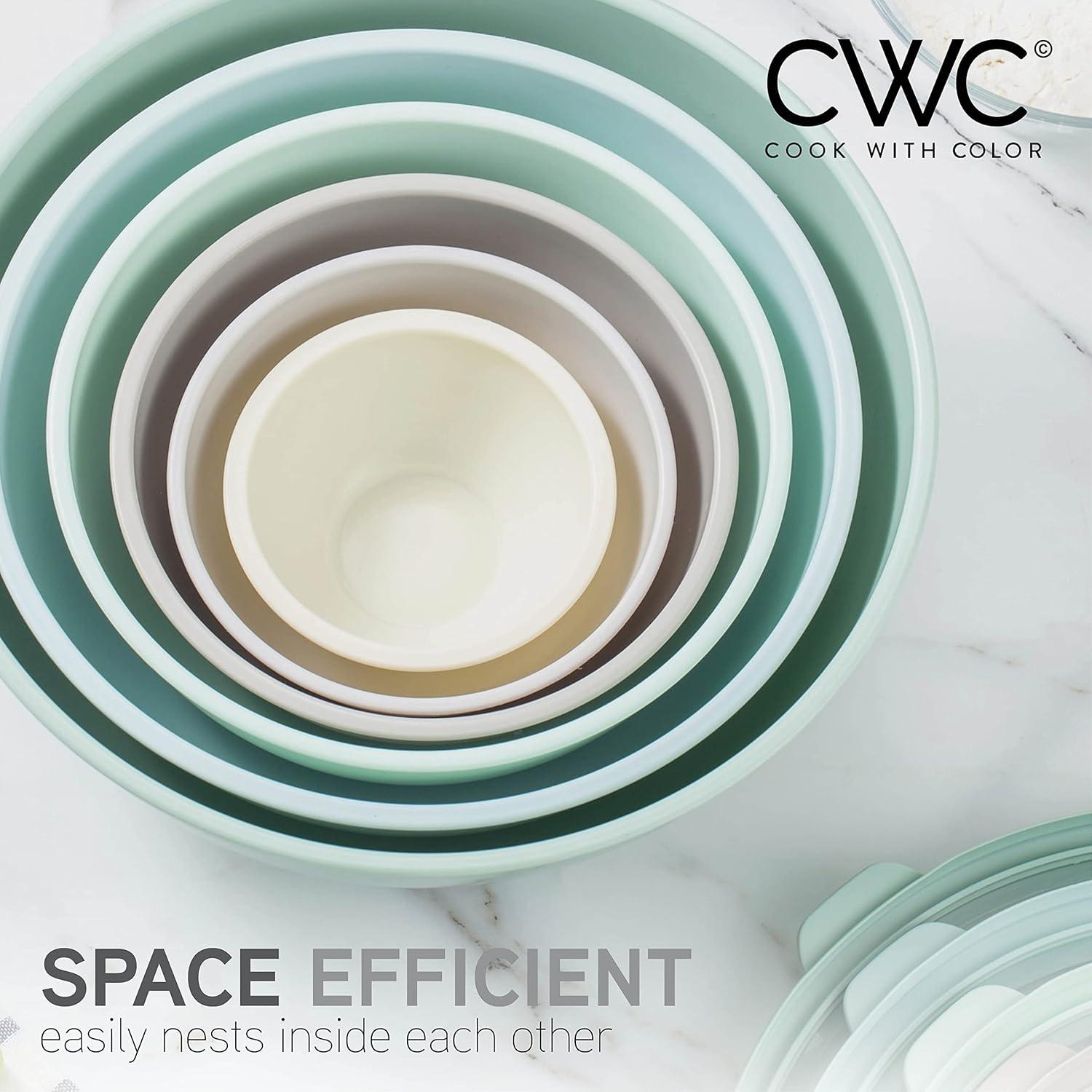COOK WITH COLOR Nesting Mixing Bowls – 12 Piece Plastic Bowl Set with Lids, Microwave Safe (Green)(Mint Ombre TPR Lids)
