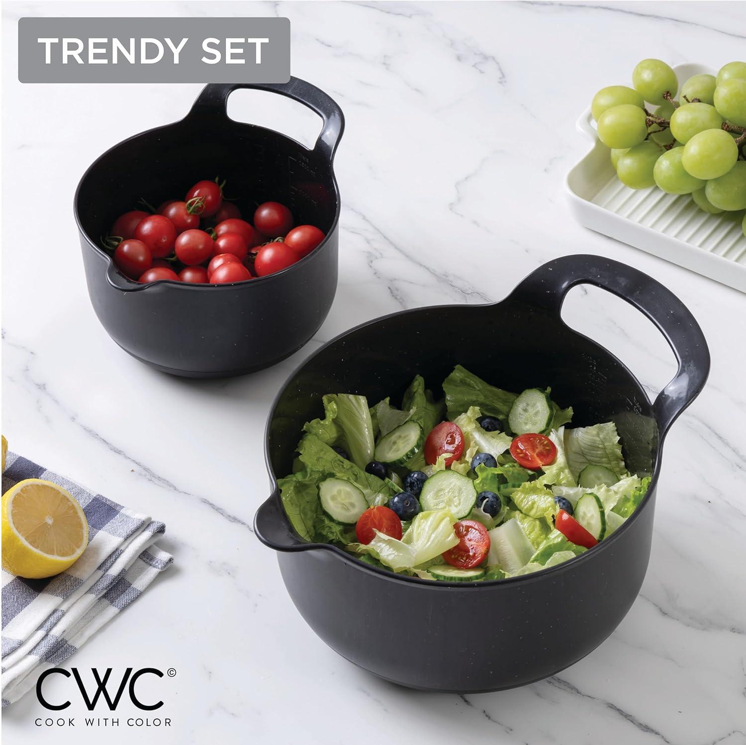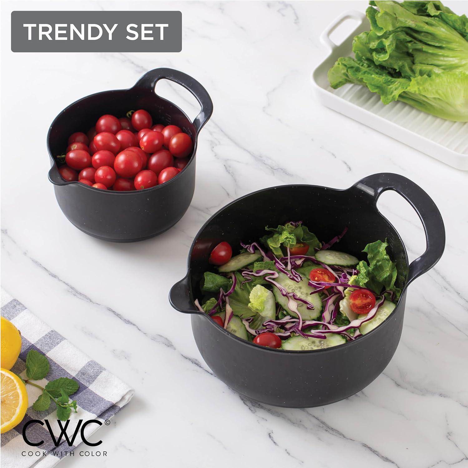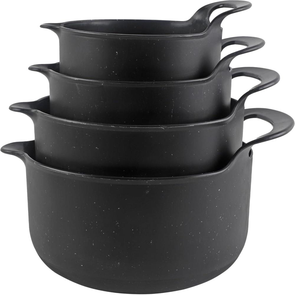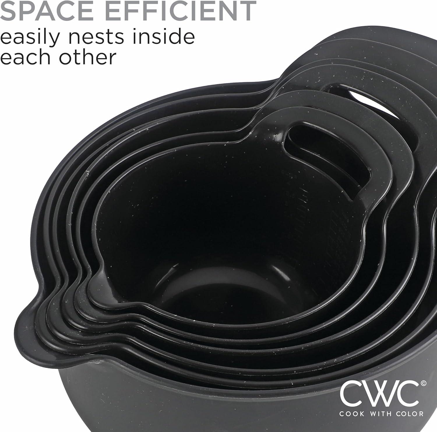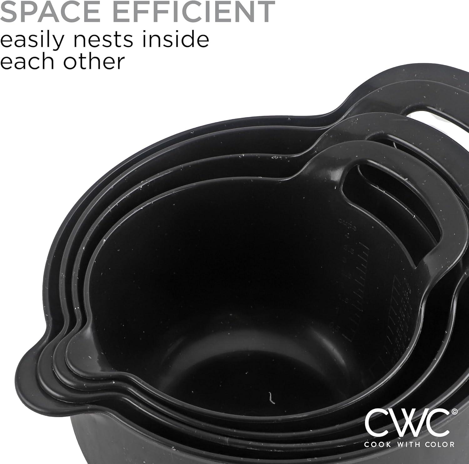 COOK WITH COLOR Nesting Plastic Mixing Bowl Set with Pour Spouts and Handles, Mint, Black and White, 4 Piece(Black Speckled)