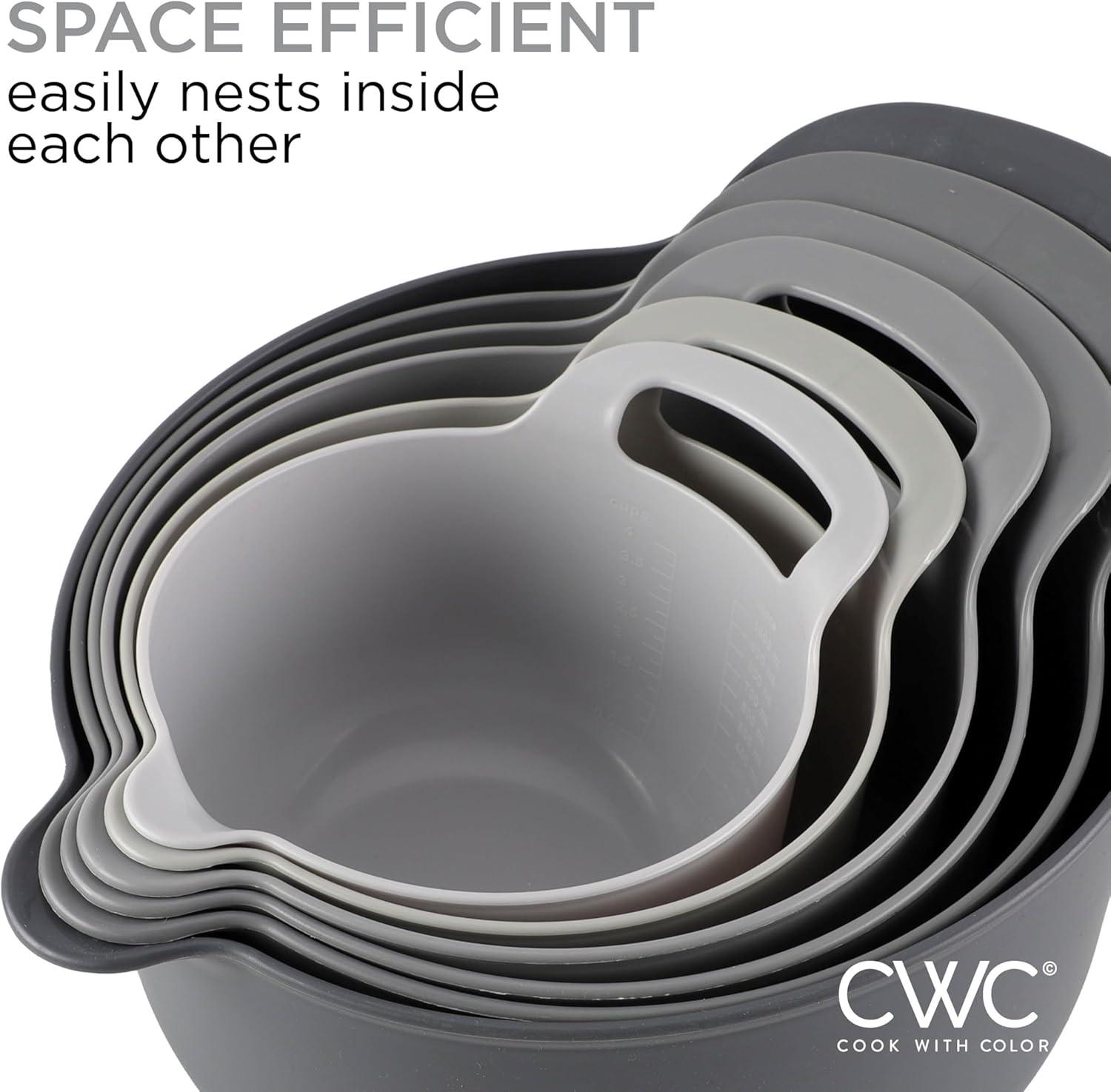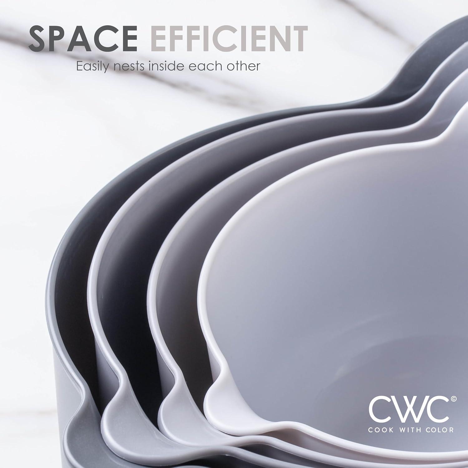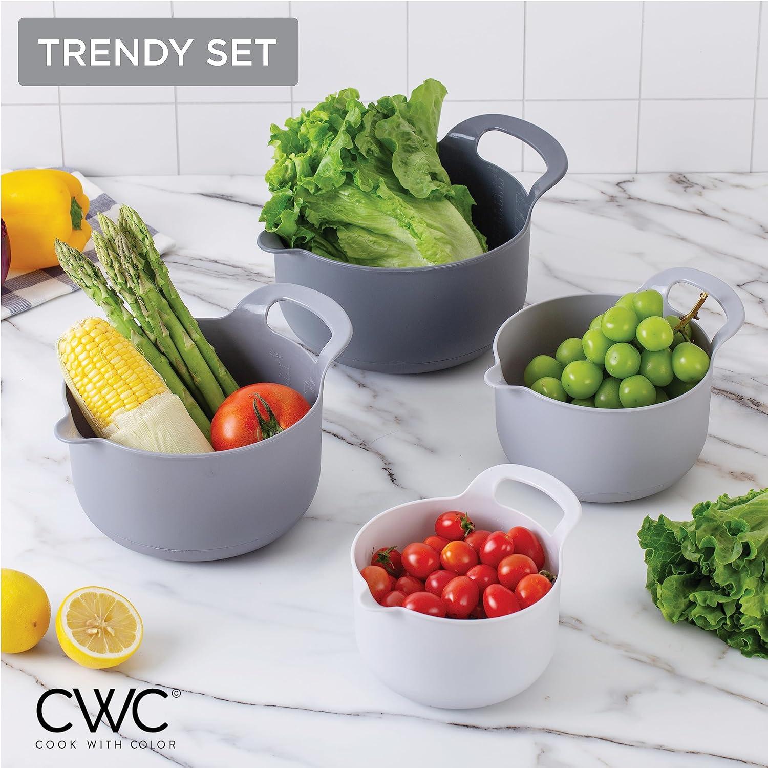 COOK WITH COLOR Nesting Plastic Mixing Bowl Set with Pour Spouts and Handles, Mint, Black and White, 4 Piece(Gray)