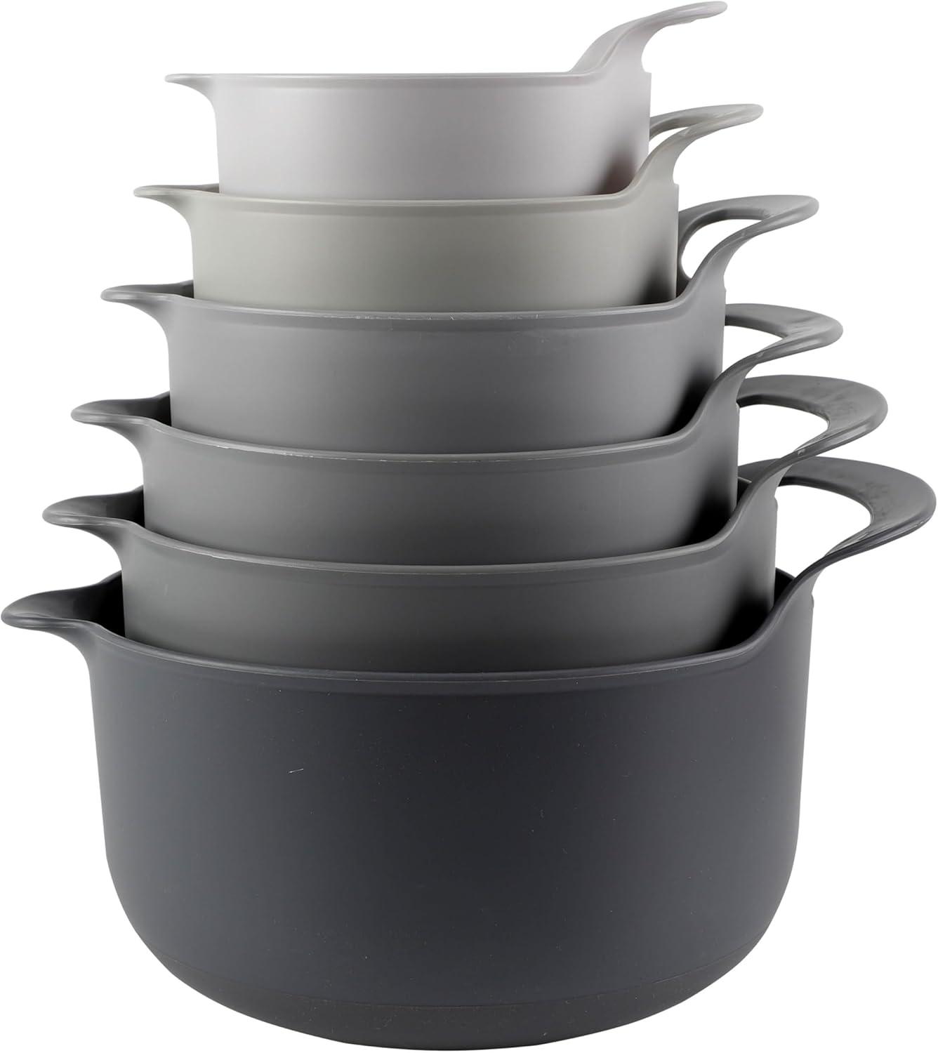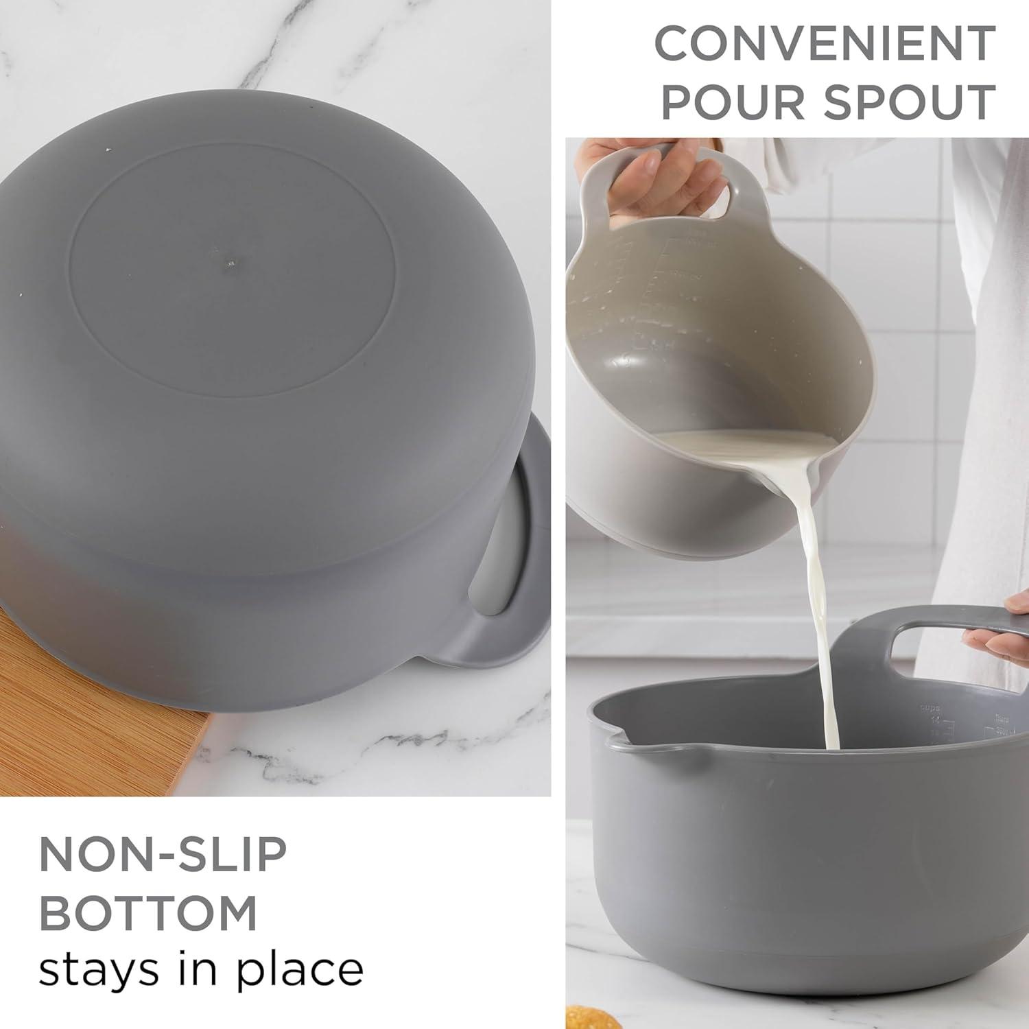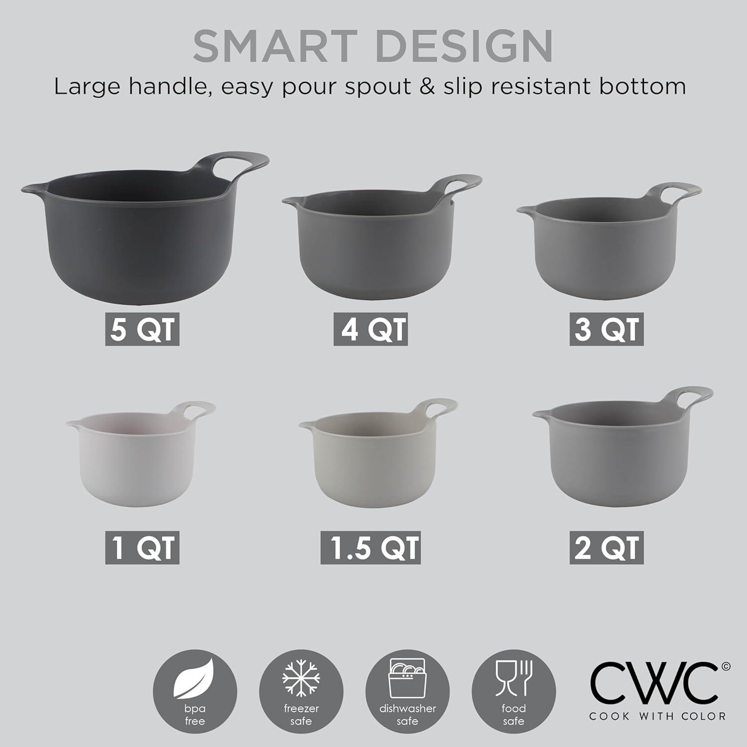 COOK WITH COLOR Nesting Plastic Mixing Bowl Set with Pour Spouts and Handles, Mint, Black and White, 4 Piece(Gray)