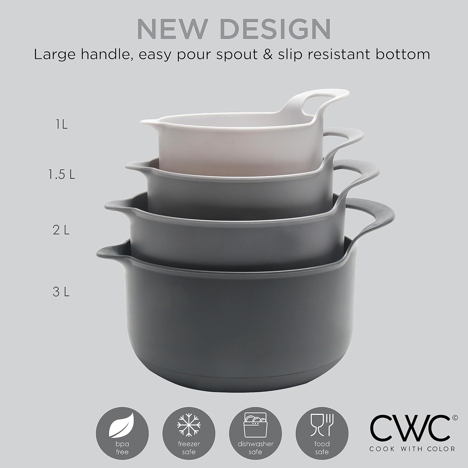 Cook with Color 4 piece mixing bowl set – non slip bowls with pour spouts and handles; easy to clean, sturdy mixing bowls.
