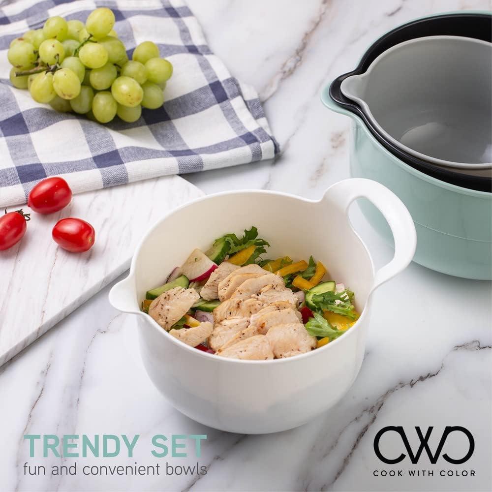 COOK WITH COLOR Nesting Plastic Mixing Bowl Set with Pour Spouts and Handles, Mint, Black and White, 4 Piece(Mint Black and White)