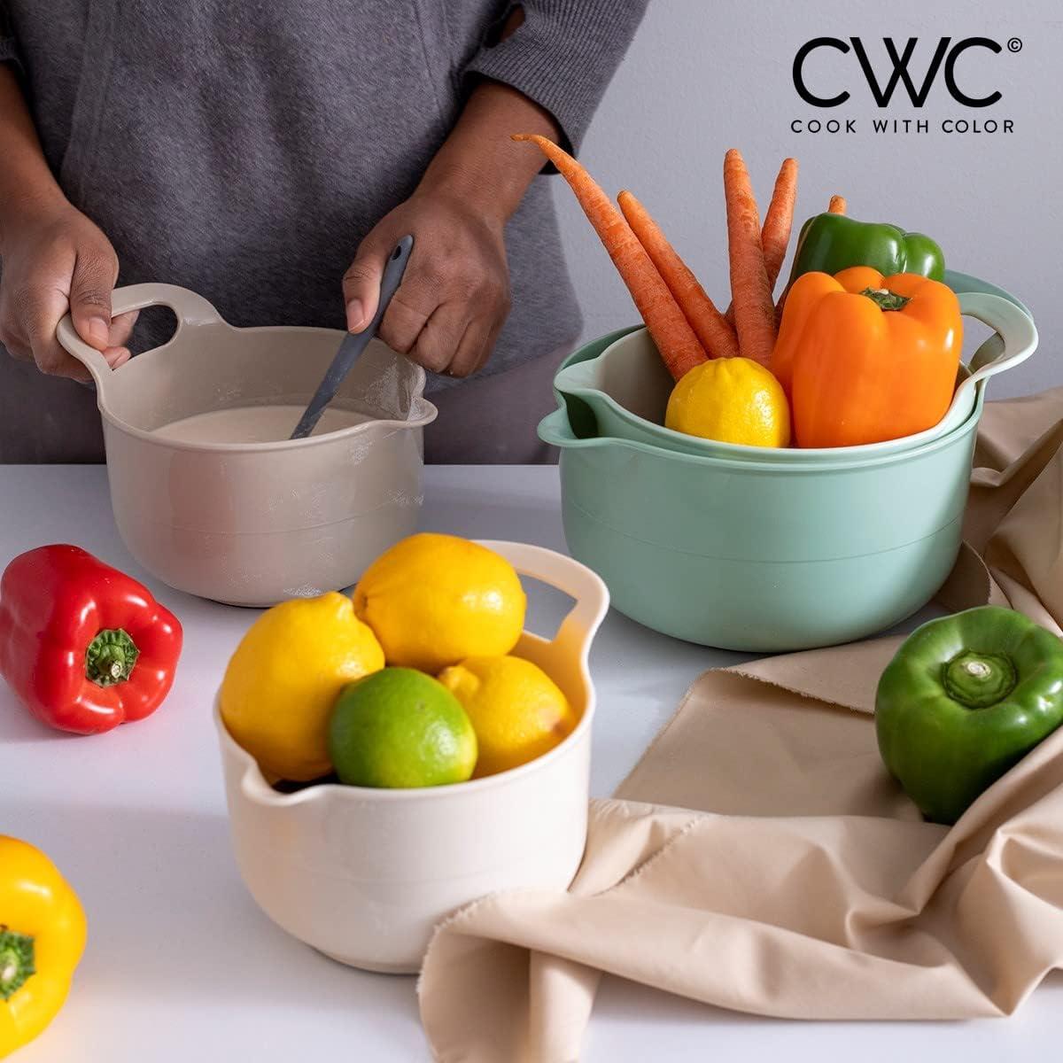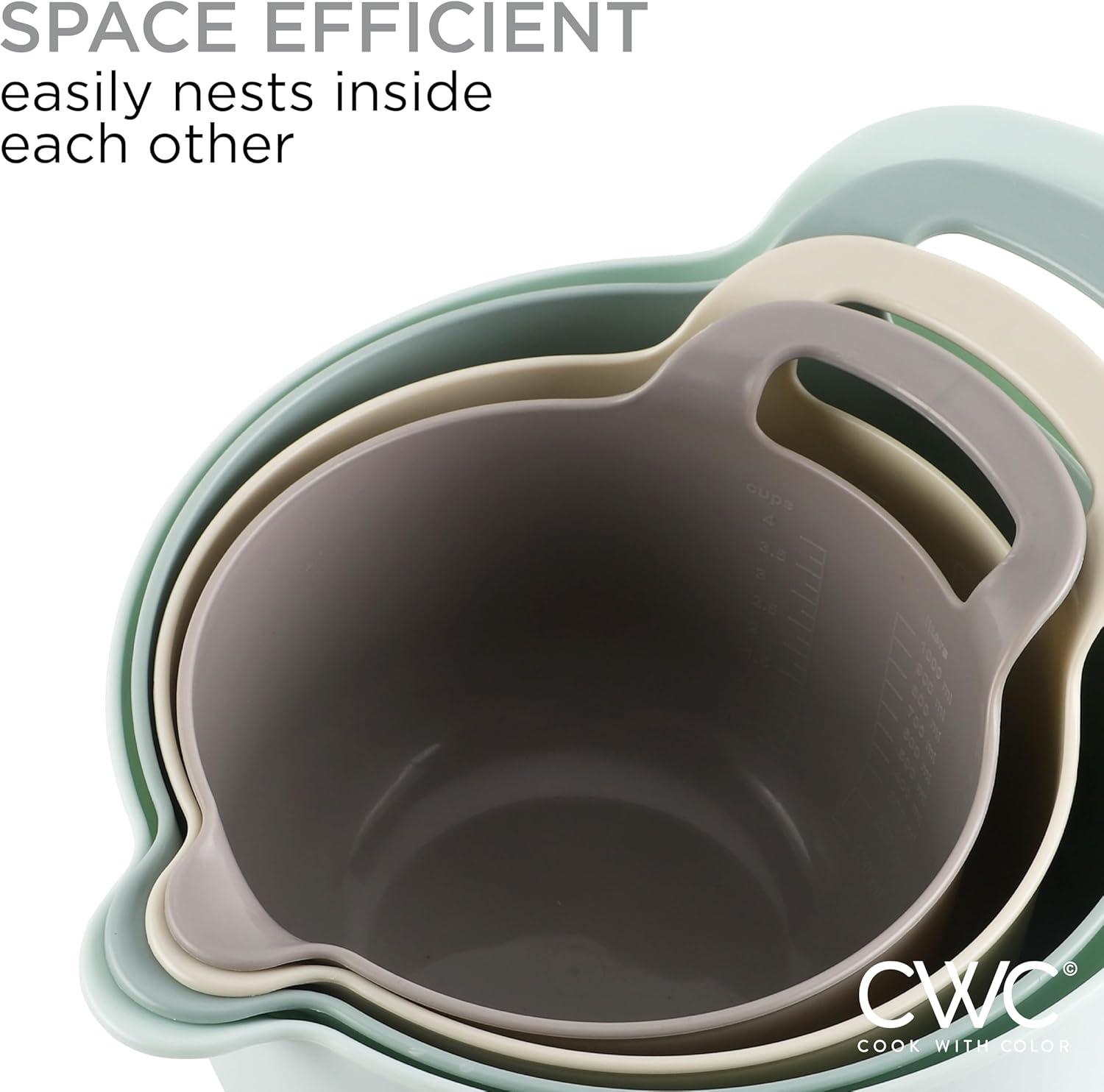 Cook with Color 4 piece mixing bowl set – non slip bowls with pour spouts and handles; easy to clean, sturdy mixing bowls.