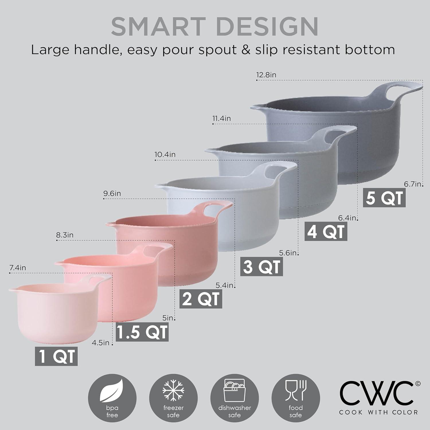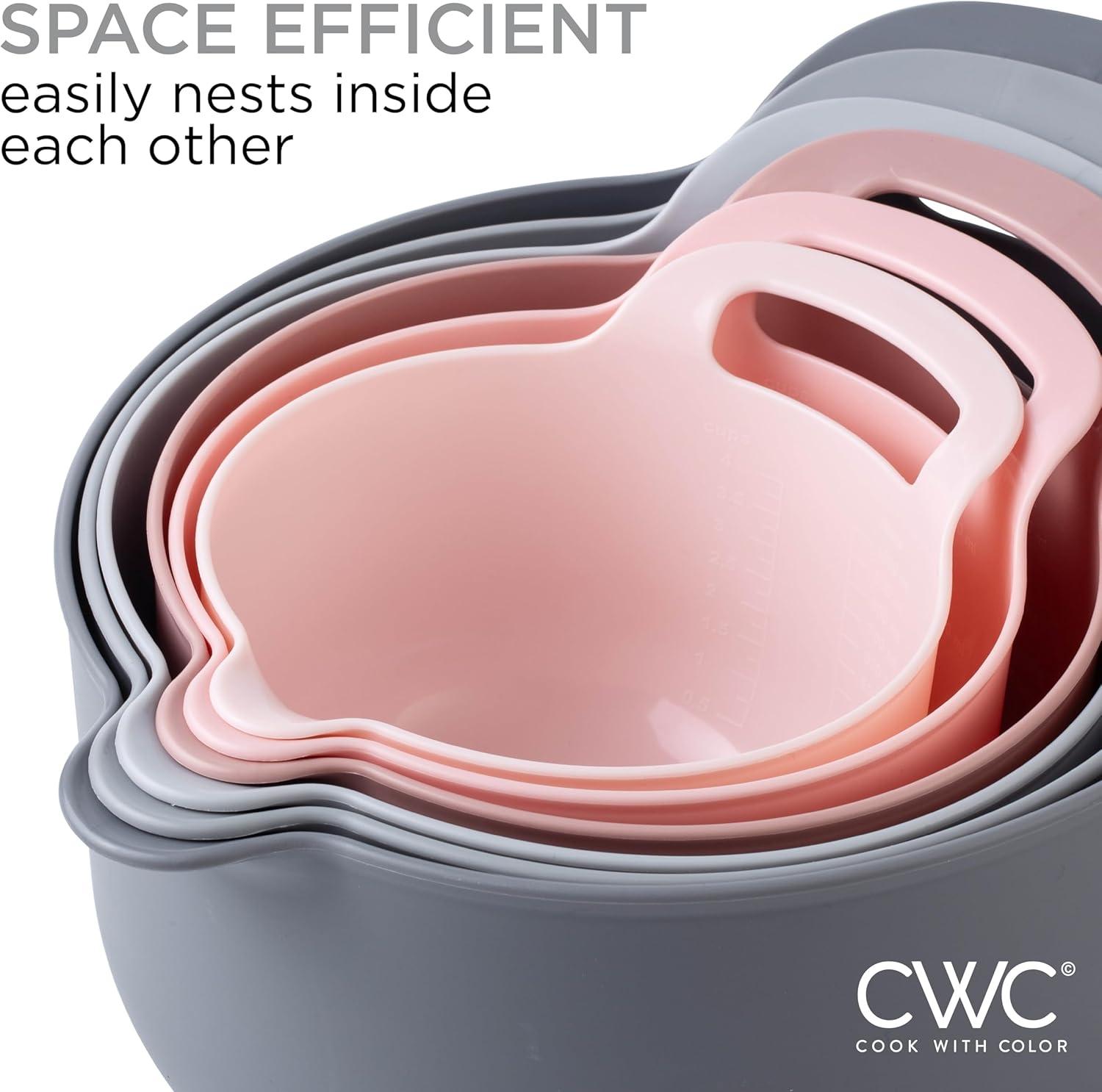 COOK WITH COLOR Nesting Plastic Mixing Bowl Set with Pour Spouts and Handles, Mint, Black and White, 4 Piece(Pink)